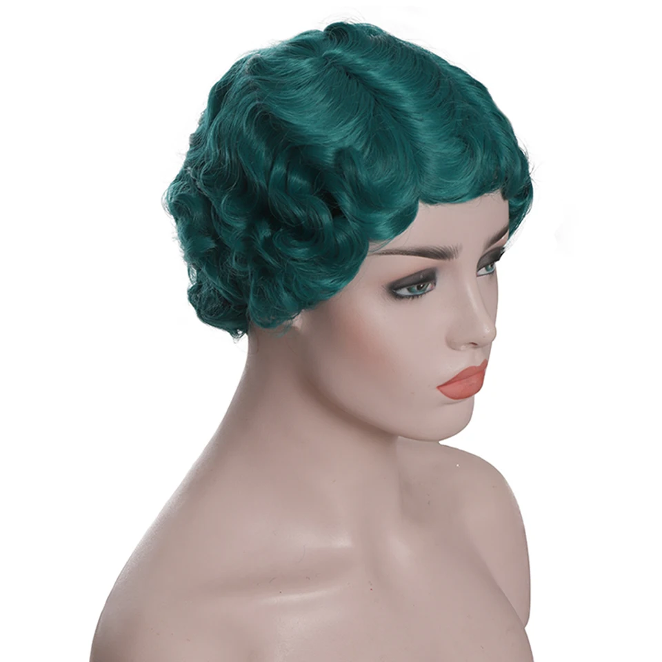 BUQI короткие кудрявые синтетические парики для черных женщин 1920s Ретро парик перстень Красный Розовый Золотой Зеленый Черный для Косплей Вечерние