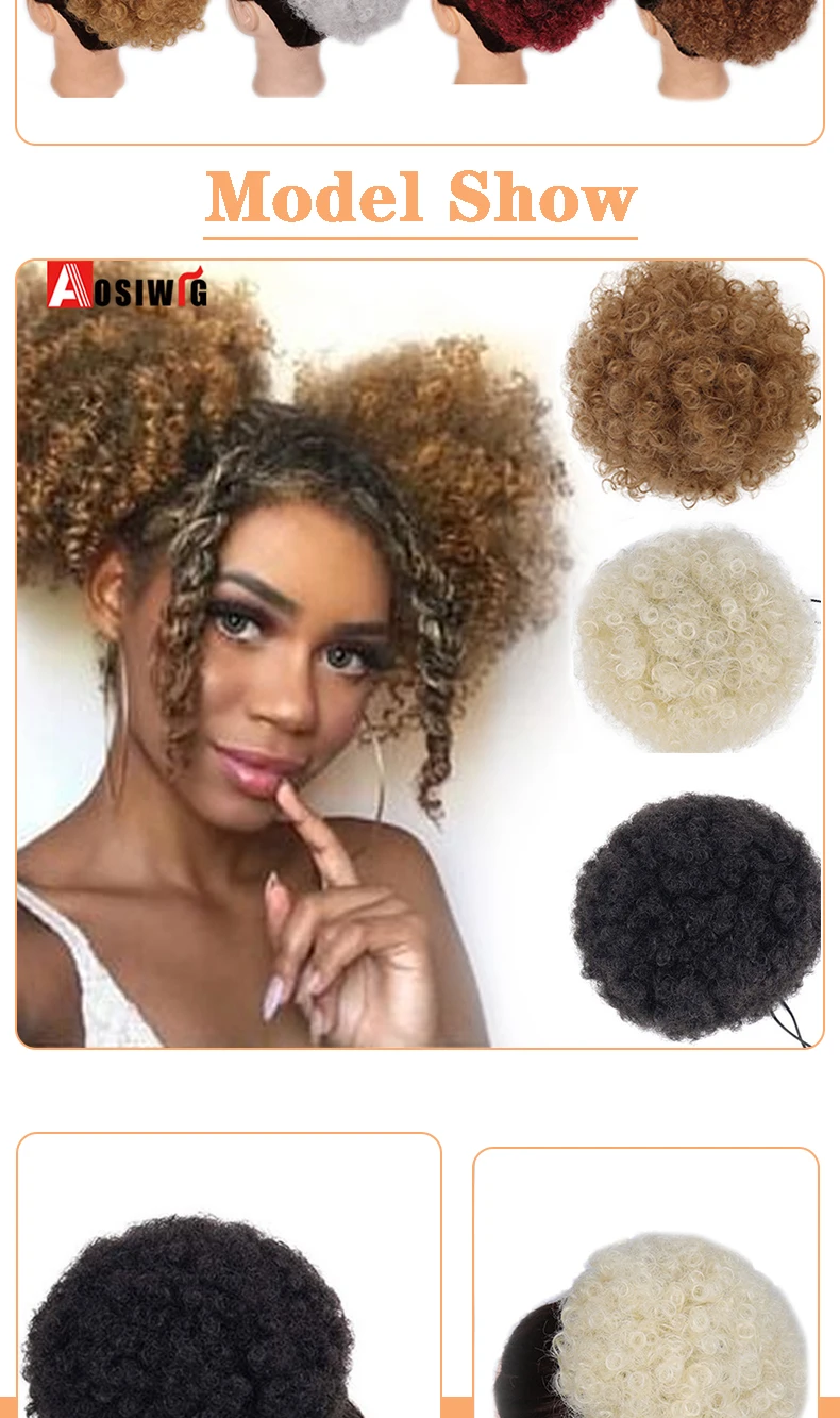AOSI синтетические Короткие афро кудрявые волосы, шиньон со шнурком и хвостом пони, накладные волосы, термостойкий шиньон