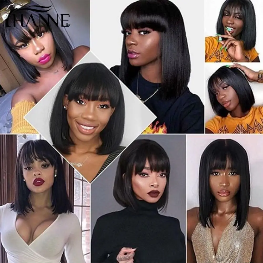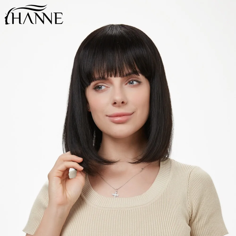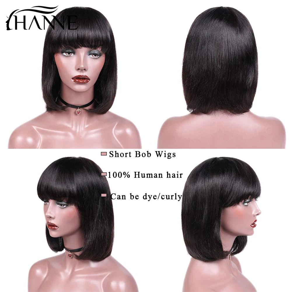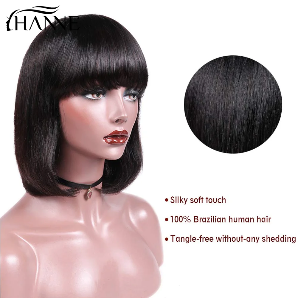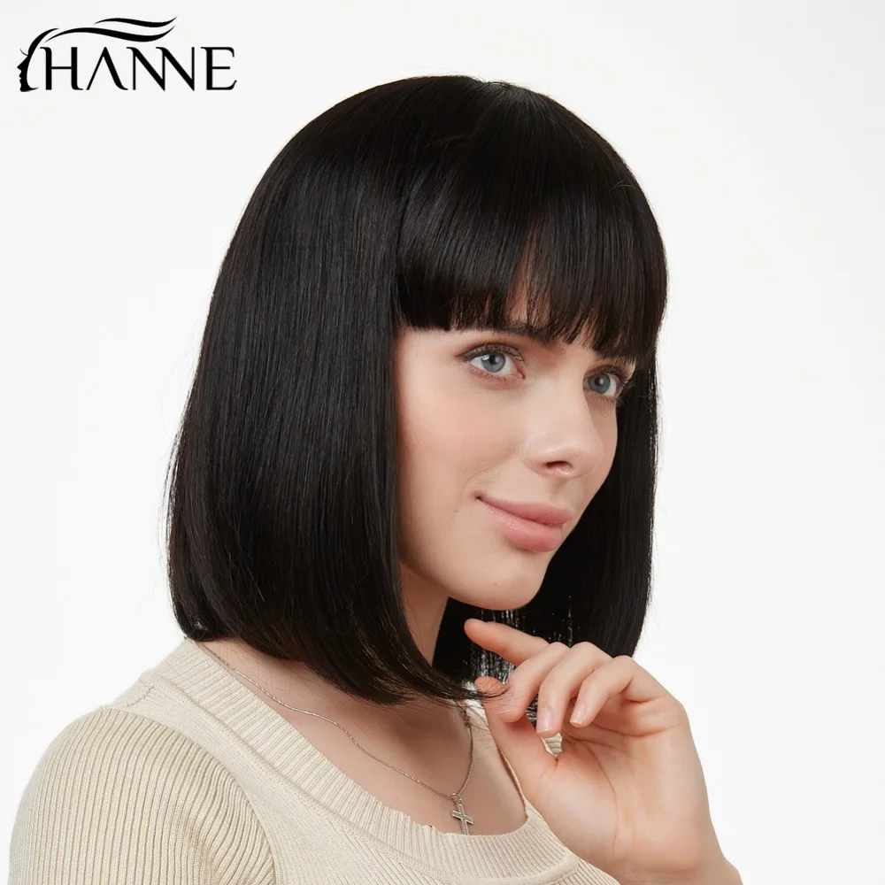 HANNE прямой парик Боб бразильские человеческие волосы парики натуральный черный короткий Fringe Remy парики с челкой парик человеческие волосы для черных женщин