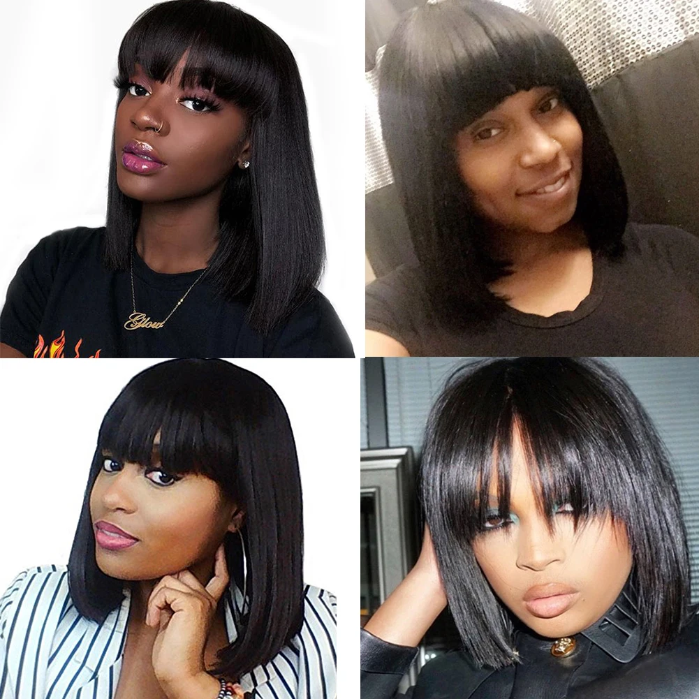 Short Bob Wigs Brazilian Human Hair Wigs Natural Black Short Cut Straight Wig With Bangs Bob Shoulder Wig For Black Women HANNE Brazilian Straight Wig With Bangs Human Hair Wigs Short Bob Shoulder Remy Wig Short Cut Wig For Black Women Free ShippngLace Front Human Hair Wigs Brazilian Remy Hair 13x4" Parting Straight Wig with Bangs 8"-26" PrePlucked 130% 150% Density Best wigs