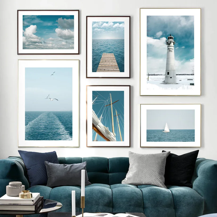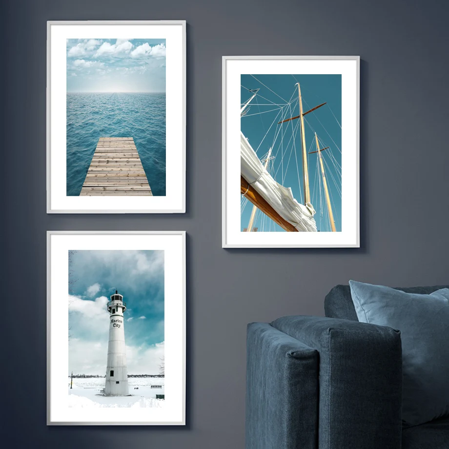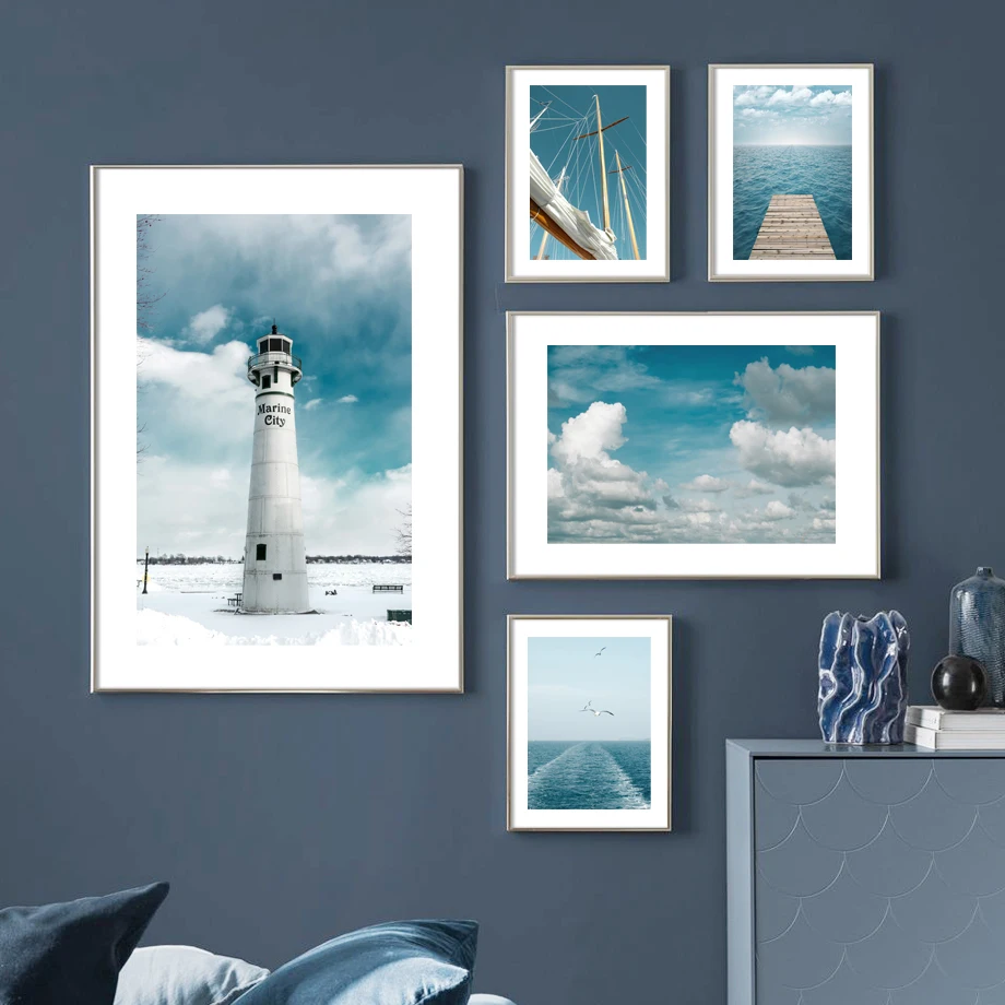 Настенная живопись на холсте, морской деревянный мост, маяк, лодка, облако, скандинавские плакаты и принты, настенные картинки для декора гостиной