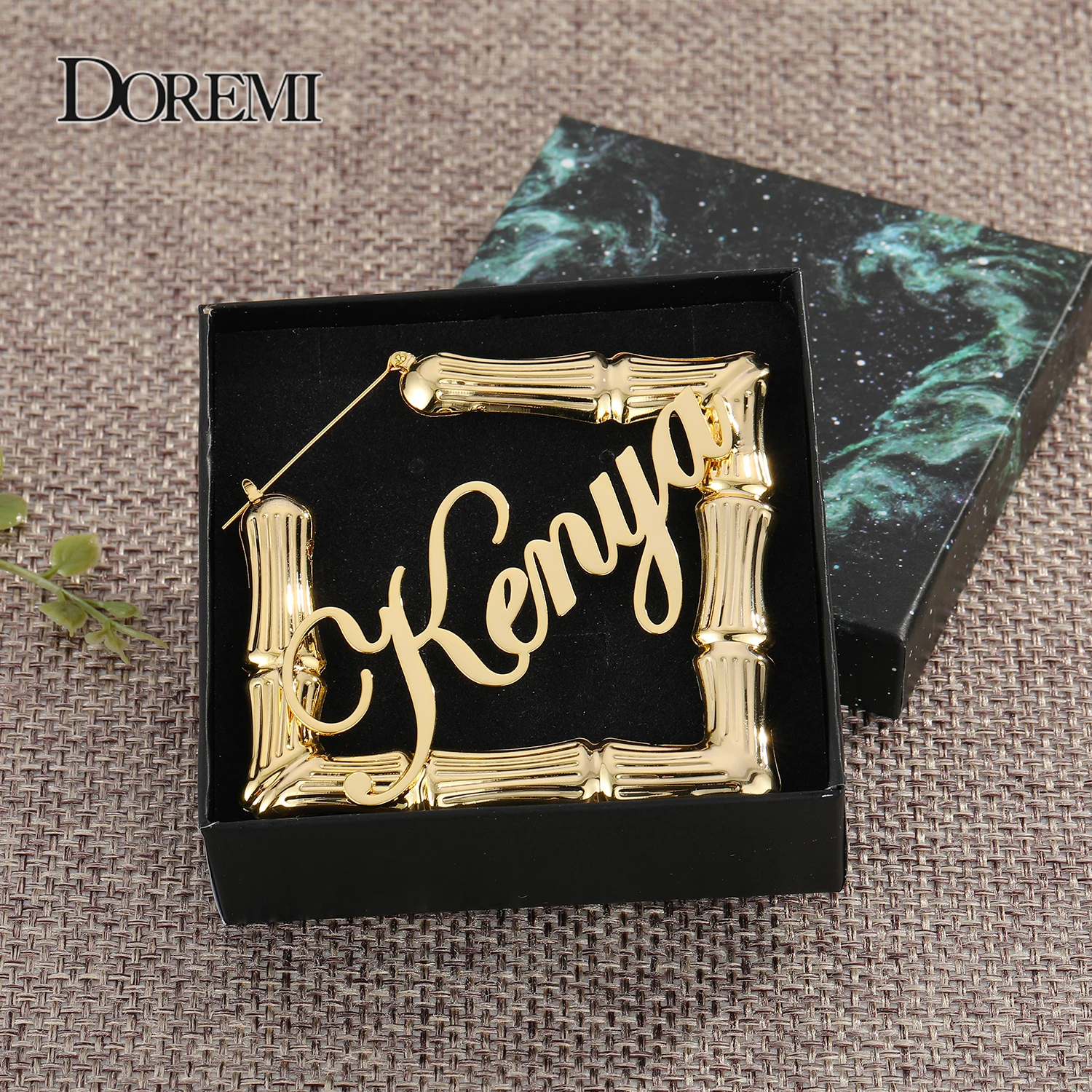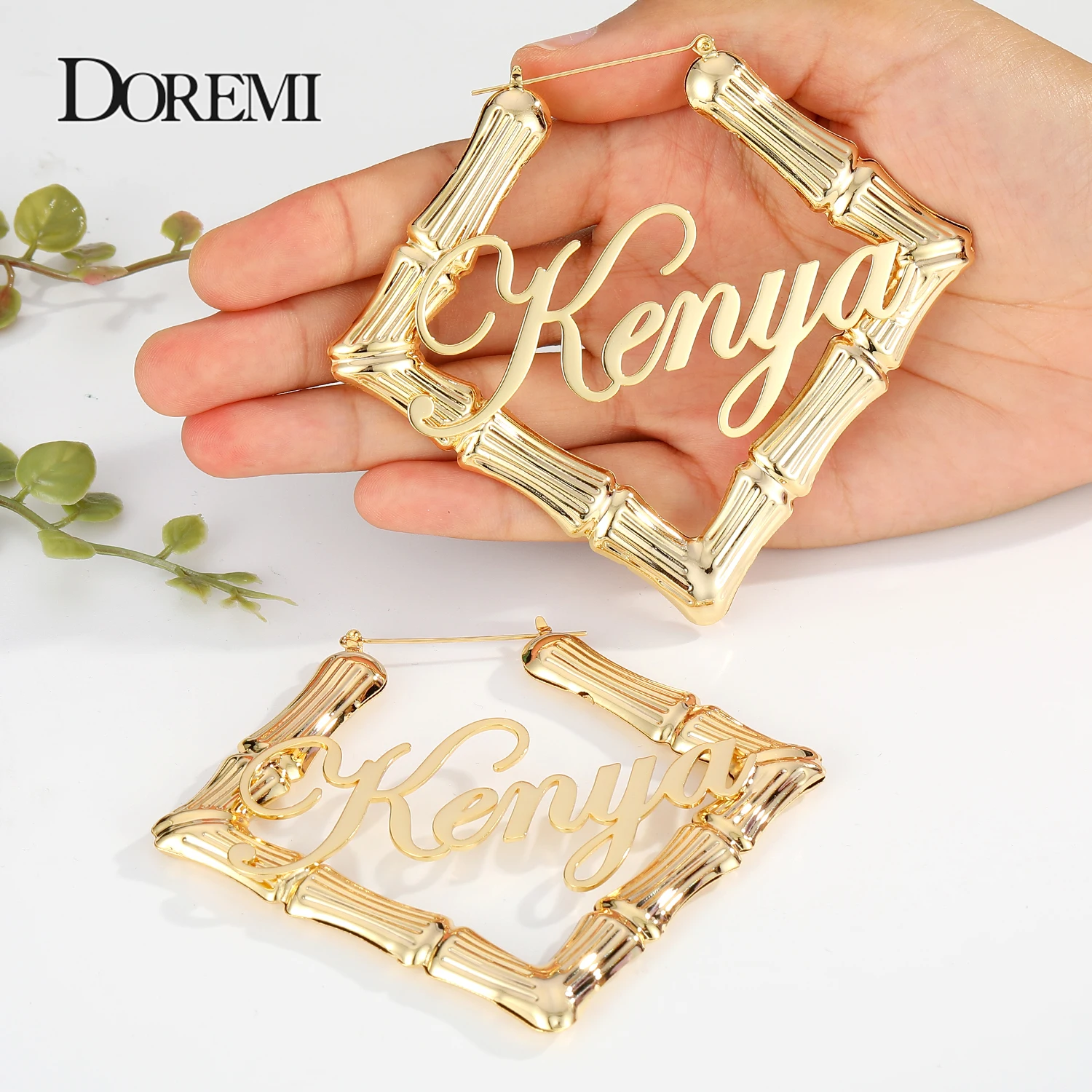 DOREMI 7090 мм серьги из нержавеющей стали в форме бамбука, квадратные серьги, индивидуальное название, серьги в БАМБУКОВОМ стиле, круглые серьги по индивидуальному заказу, цифры