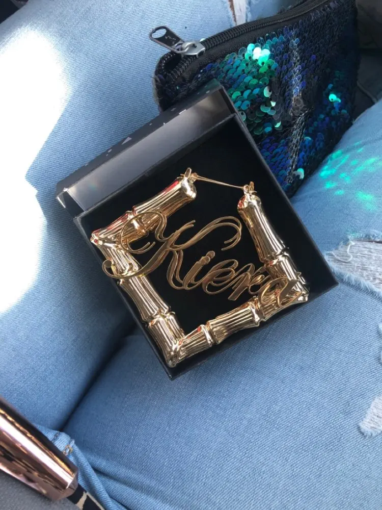 DOREMI Цвет Фул Пользовательские Бамбук Имя Серьги блеск Цвет стике...