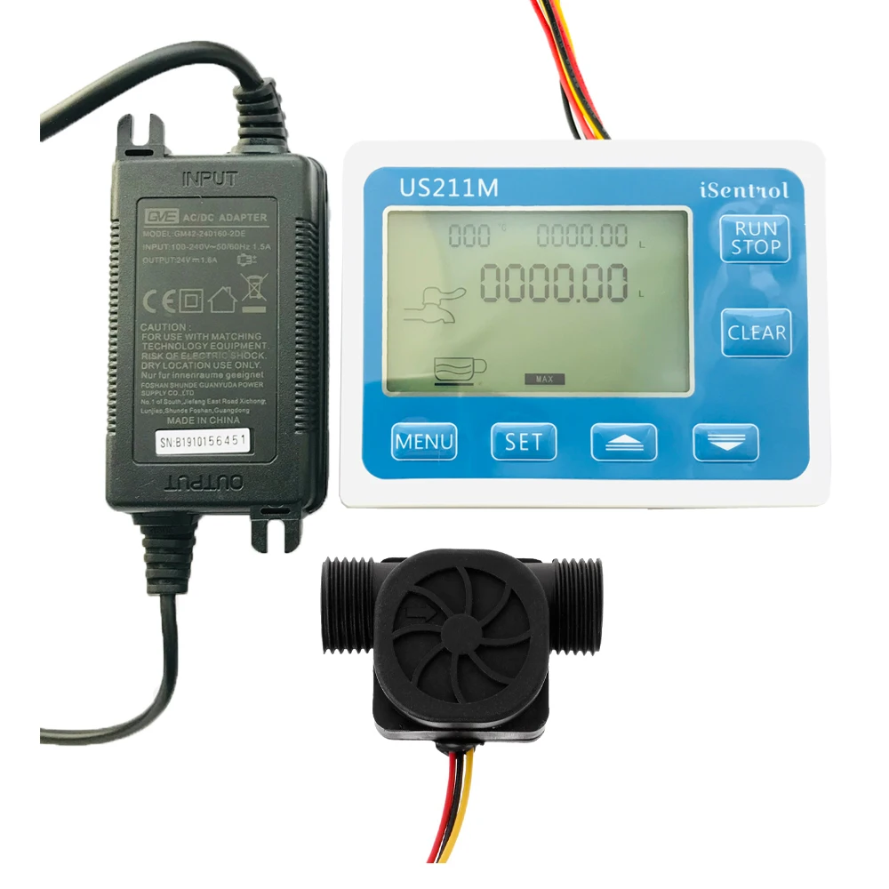 1. Контроллер цифрового дисплея US211M может отображать мгновенный поток, блок потока L / min (или GPM),