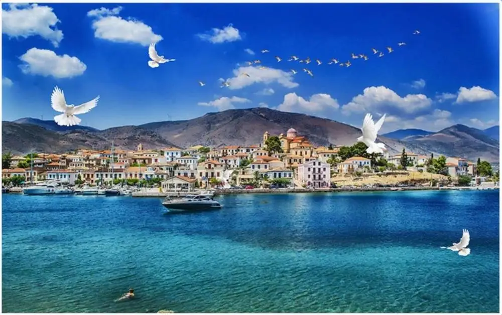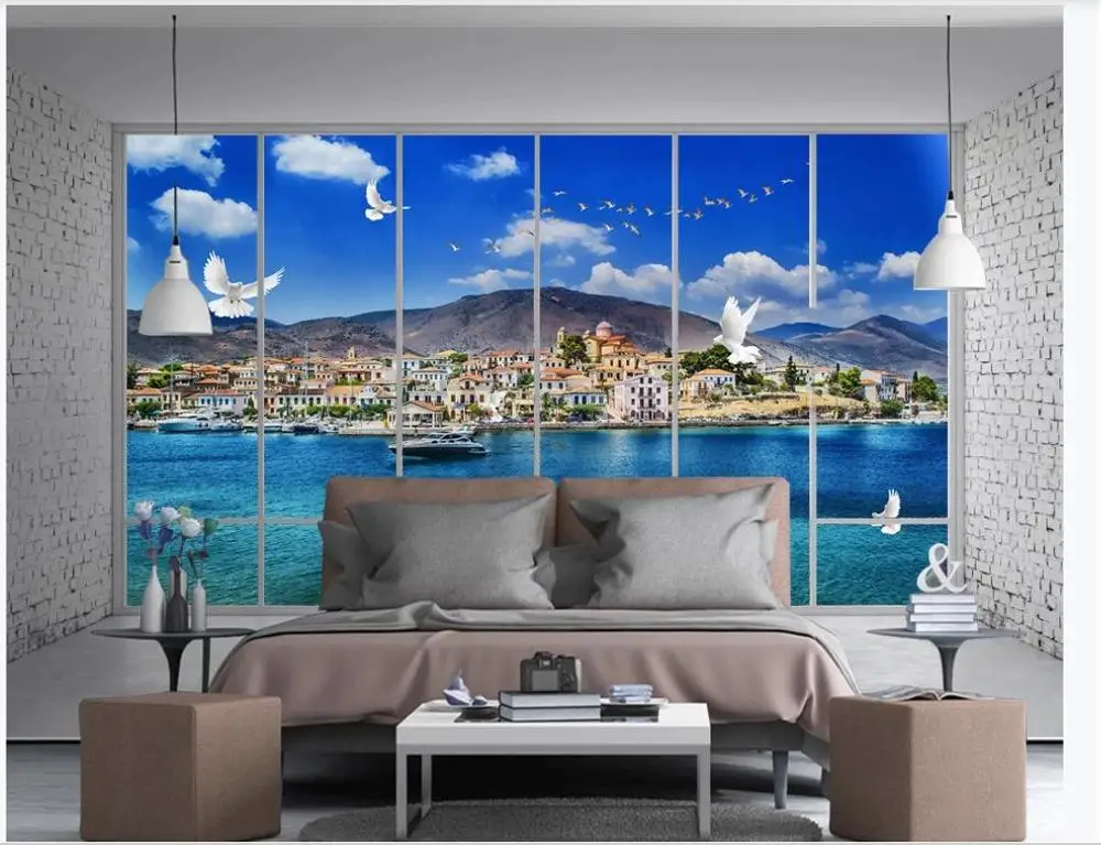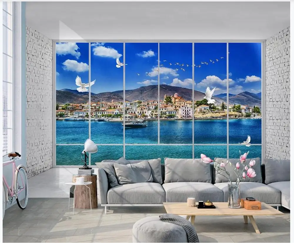 Пользовательские фото обои 3d Настенные обои для стен 3d красивые синие морские виллы вид на море Чайка окно гостиной