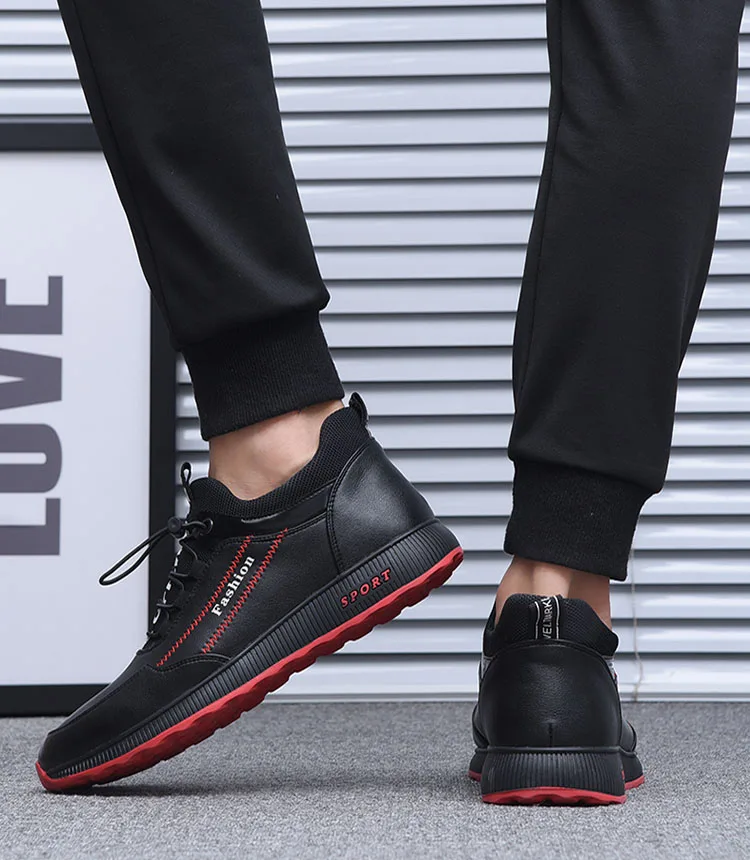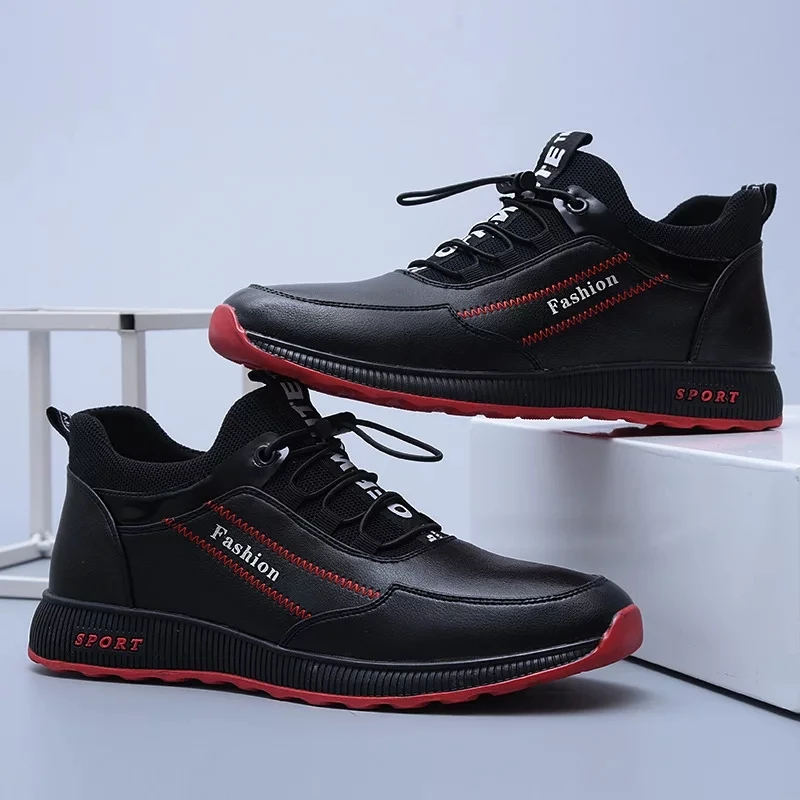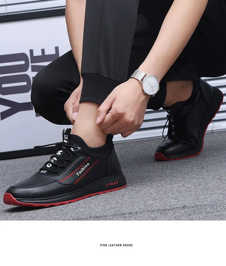 Мужские кожаные кроссовки, на плоской подошве, с вельветовой подкладкой, теплые, черные, повседневные, большие размеры, для зимы, 2020