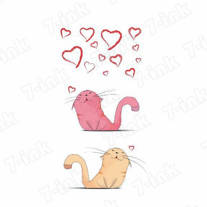 Водостойкая временная татуировка наклейка для пары животных Розовый Желтый Кот сердце искусство Татуировка передача воды искусственная фотография для мужчин женщин