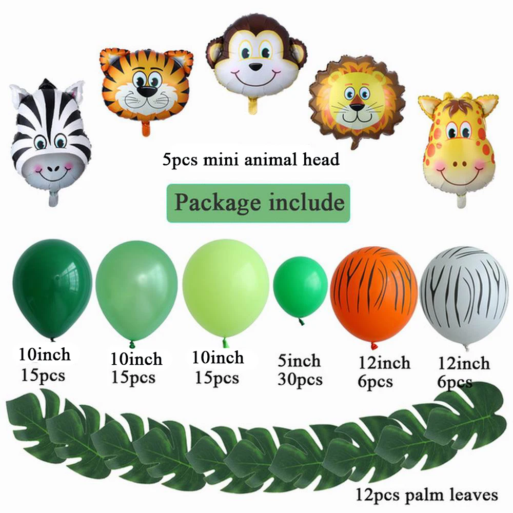 106 шт. воздушные шарики в виде животных комплект гирлянды джунгли сафари принадлежности для тематической вечеринки сувениры детский день рождения, день рождение мальчика украшения для детского душа