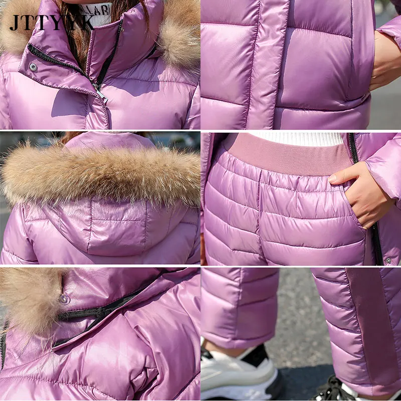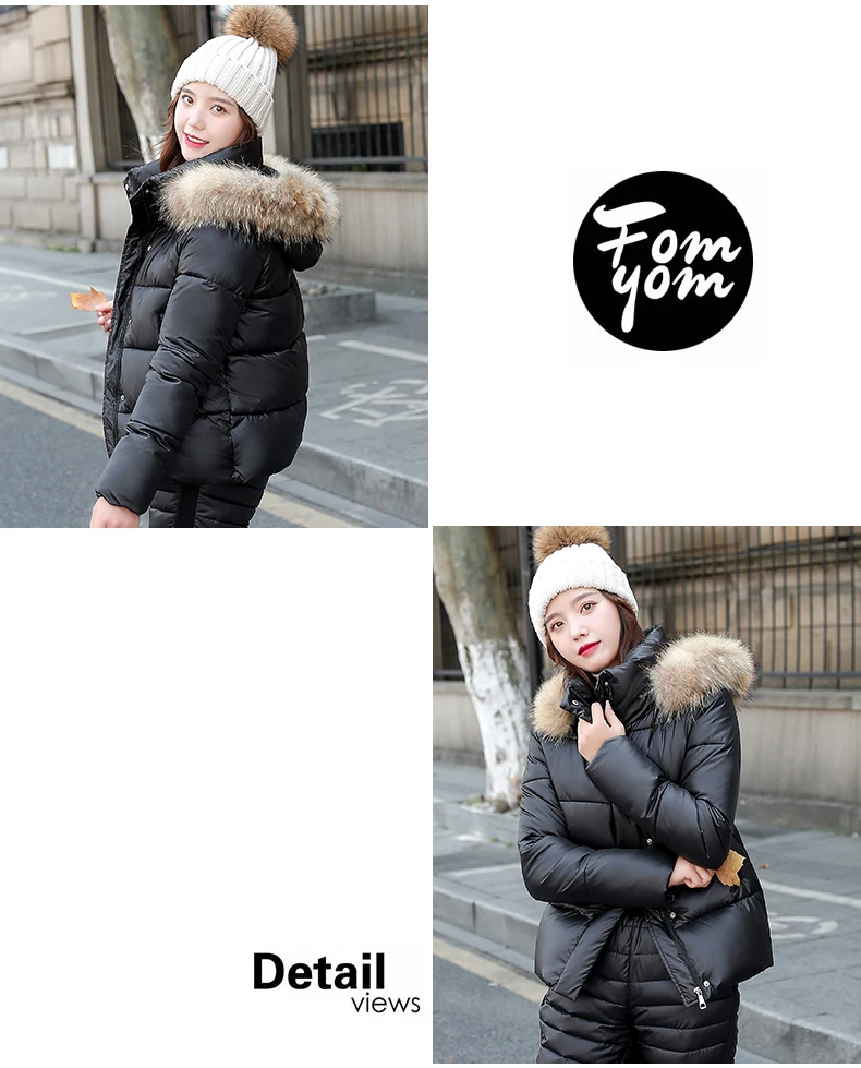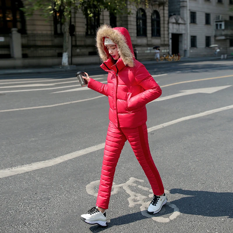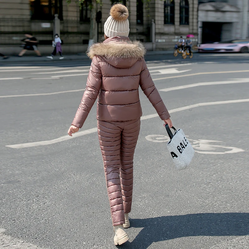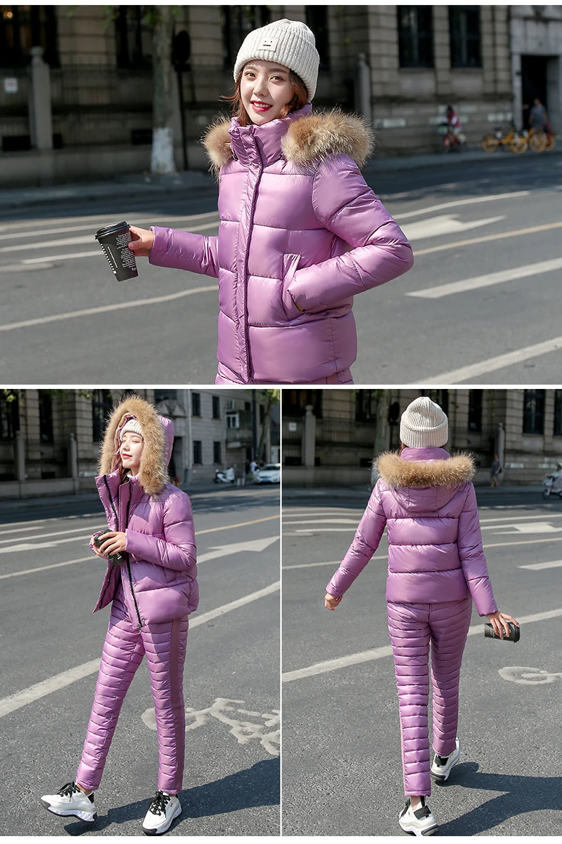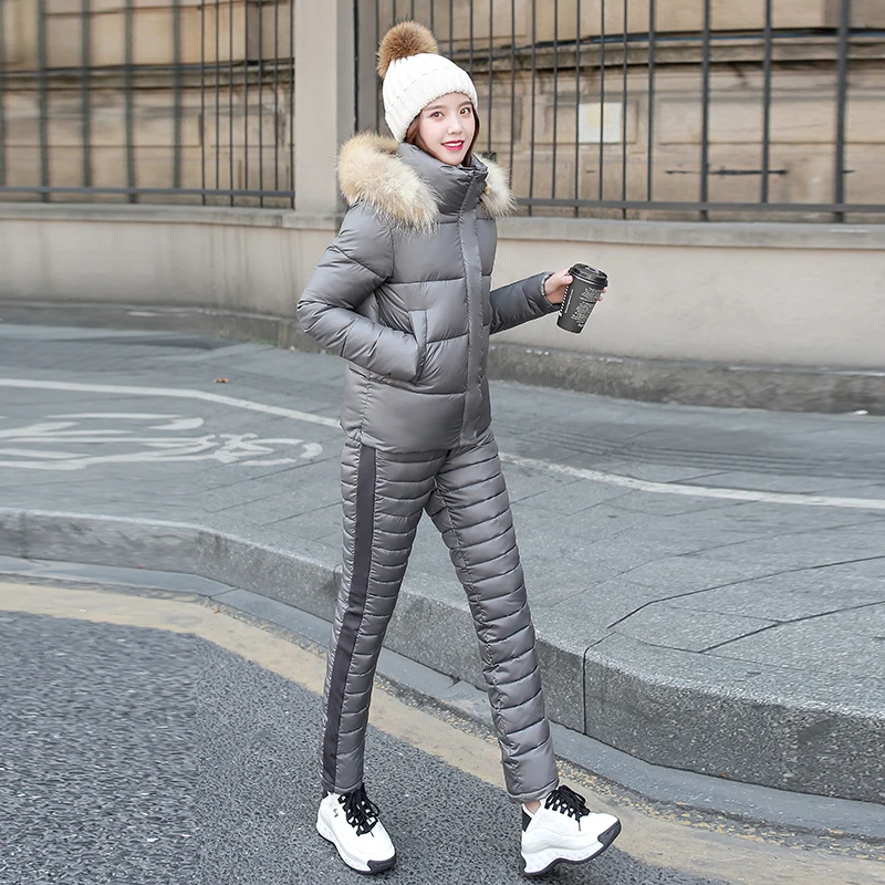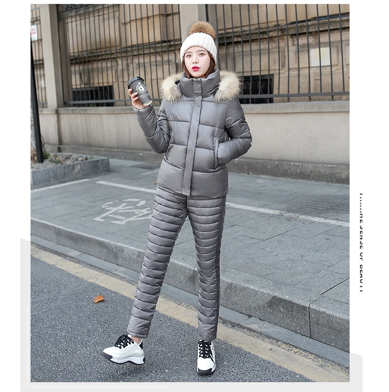 Женский зимний комплект, парка с меховым воротником, утепленная куртка с капюшоном и штаны из хлопка с эластичным поясом, 2021