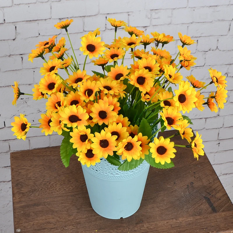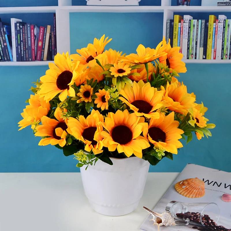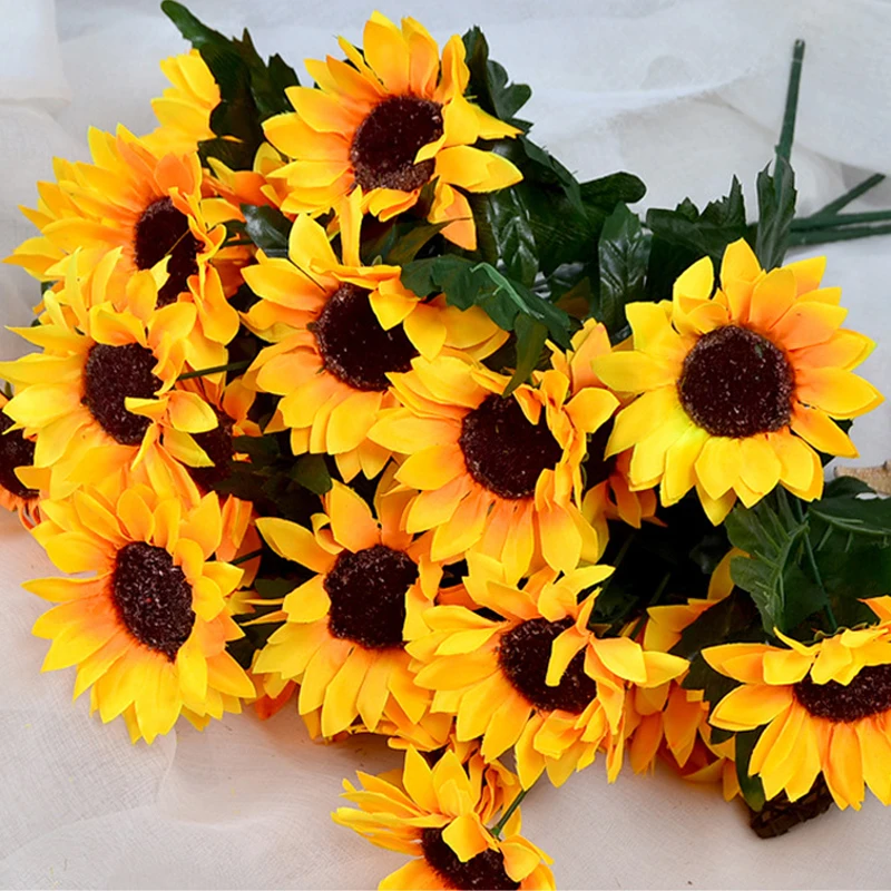 Осенний желтый подсолнух, шелковые искусственные цветы, букет для свадьбы, украшения дома, офиса, вечеринки, сада, Декор