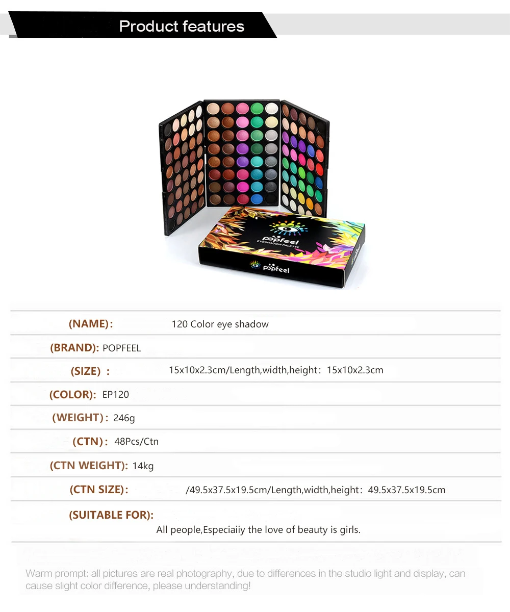 POPFEEL брендовые 120 оттенков блестящие тени для век Палитра матов...