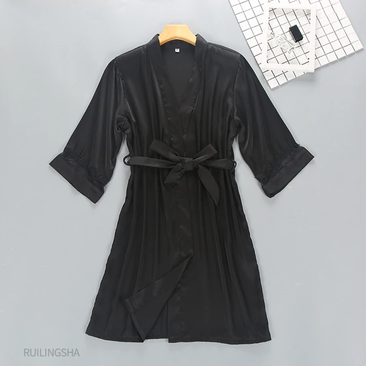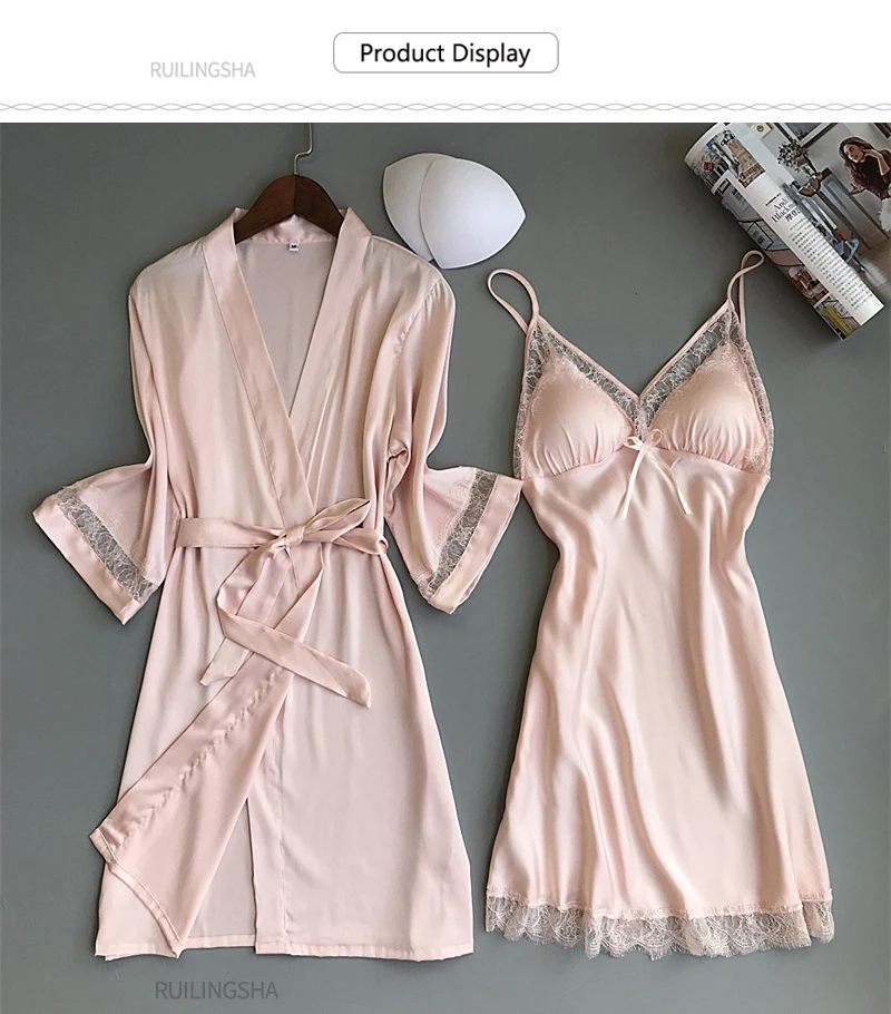 Женский Шелковый пижамный комплект, из 2 предметов, кружевная Мягкая атласная ночная рубашка, размера плюс сексуальное свободное кимоно, Свадебный банный Халат