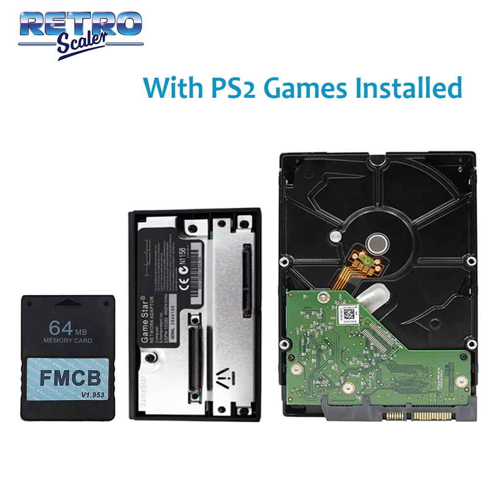 RetroScaler v1.953 FMCB 8163264 МБ, Заводская Пломба для PS2 + 3,5 "жесткого диска SATA HDD 803205001 ТБ2 ТБ с игр + GameStar SATA адаптер