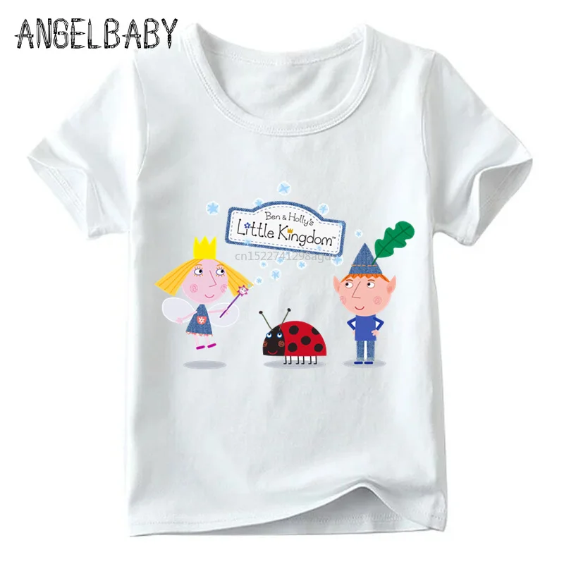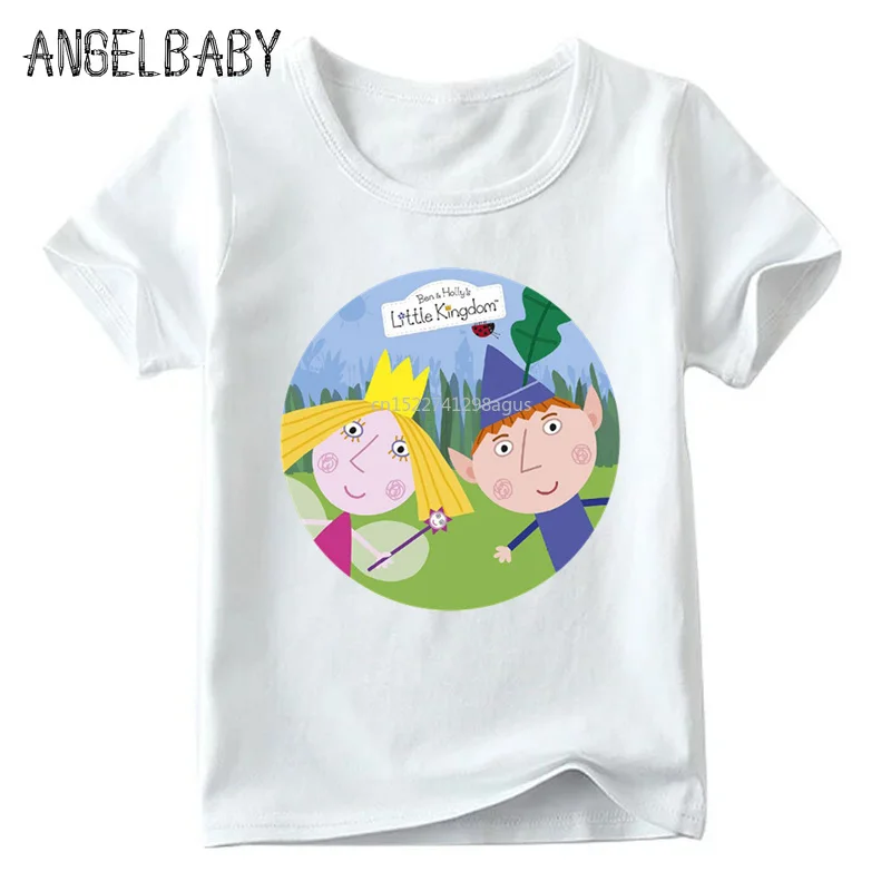 Детская футболка с героями мультфильмов Бен и Холли, летние белые топы с коротким рукавом для мальчиков и девочек, детская повседневная футболка, ooo5038