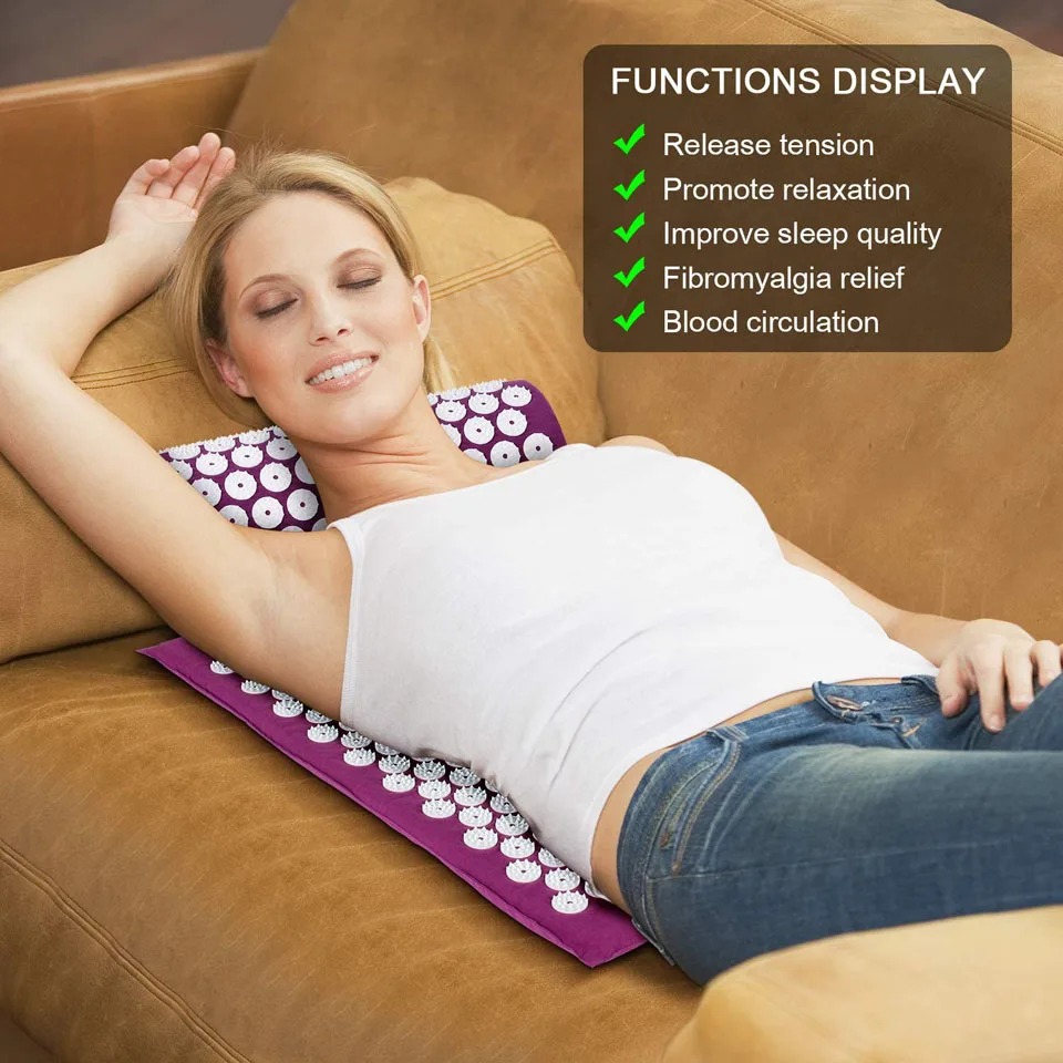 Массажный коврик CoolFit для акупрессуры и набор подушек для йоги, акупунктурные подушки, аппликатор kuznetsov для снятия спины, шеи