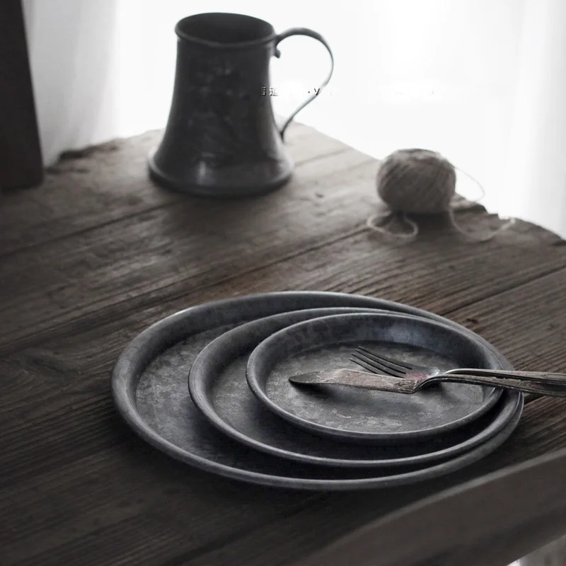 Ручной работы металлические сервировочные подносы античный круглый кованый лоток для хранения десерт фруктовый торт хлеб тарелка украшение для дома кухни