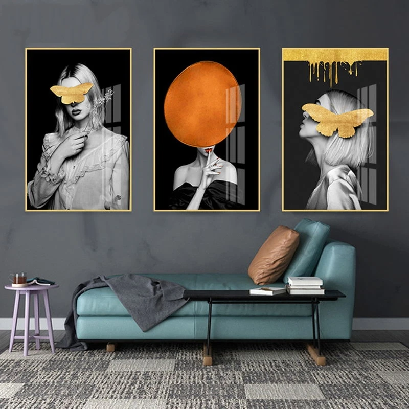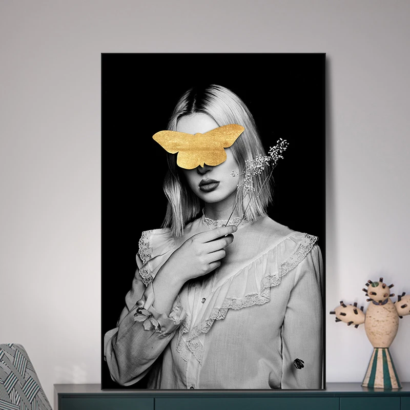 Абстрактная фигурка, холст, живопись, лицо золотой девушки, модное ...