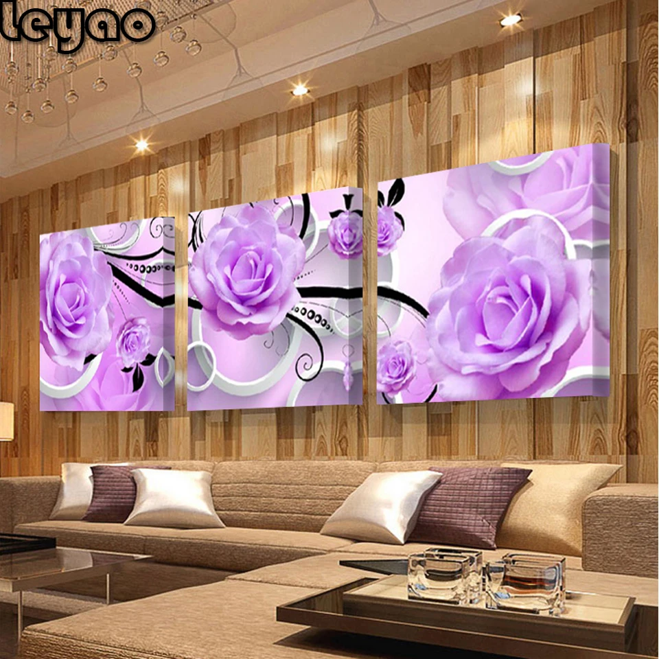 Алмазная вышивка с цветами, картина из страз сделай сам, Триптих, пион, квадратные, круглые алмазные мозаики с иконами, полная поделка