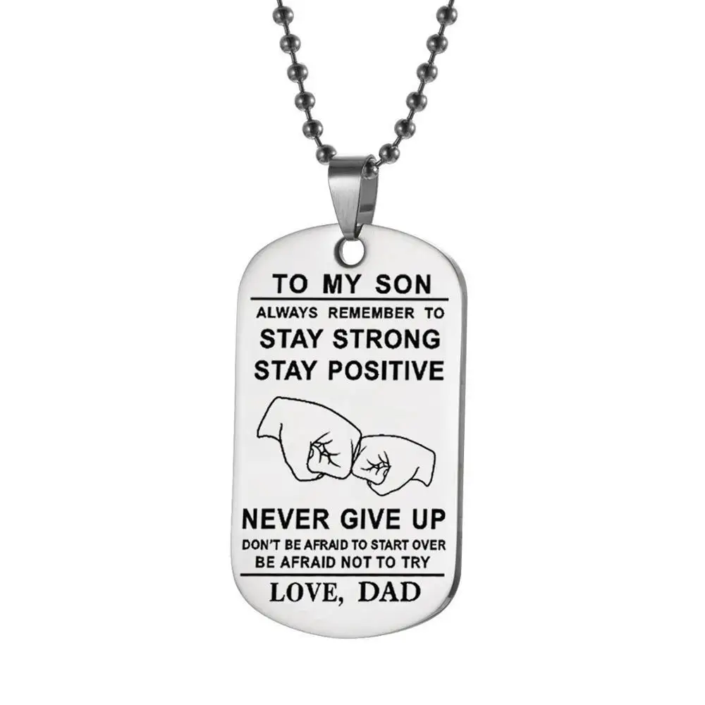 Моему сыну никогда не сдавайся, любовь, папа, Очаровательная подвеска, ожерелье из нержавеющей стали для сына, отца, ювелирные изделия, подарок