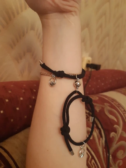 браслетики просто вау!!! нам очень понравились. доставка нормальная, браслеты соответствуют фото и описанию, для людей с отношениями на расстоянии тоже подойдут. создается ощущение того, будто человек постоянно рядом. в воде не ржавеют, магнитики хорошие. единственная проблемка была с затягиванием браслетов, но мы разобрались.