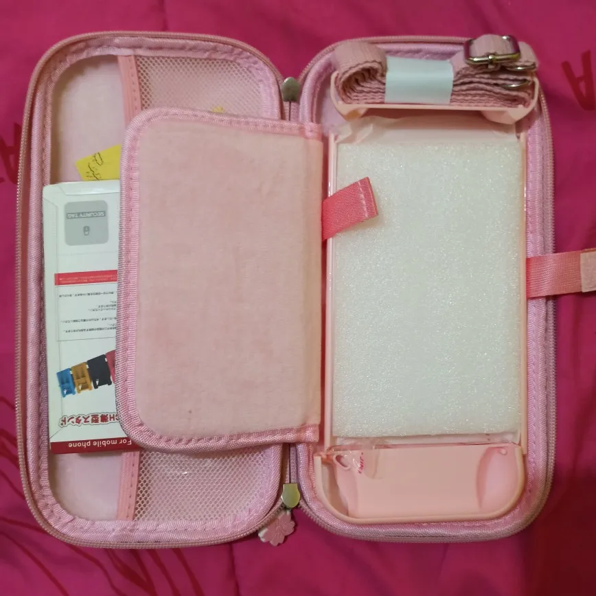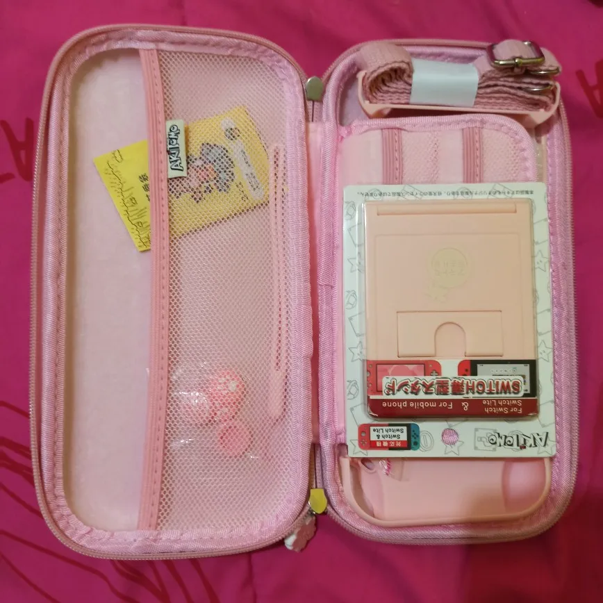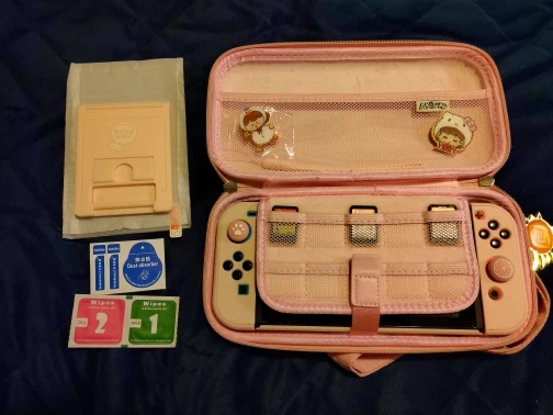 I bought this during its sale and the price is absolutely worth it! I love this case, it's adorable. The case is clean, and has no strange scents. The protective cover for my switch fit perfectly and the texture is smooth. I recieved everything that was advertised, and no pieces were broken. Shipping was fast too, but I don't remember how long it took. It did not come with the pins or the keychain though, I added those myself.
