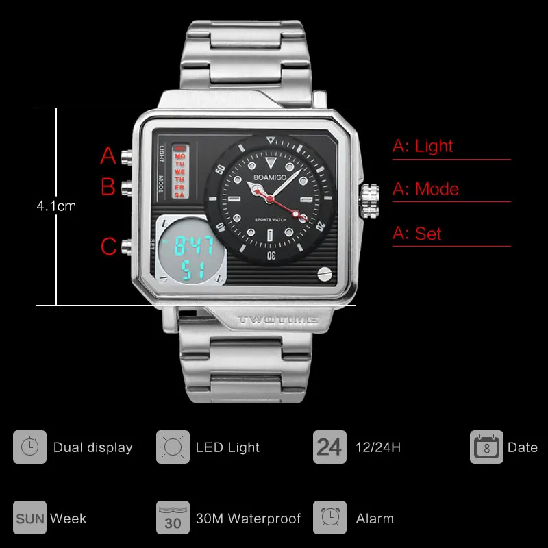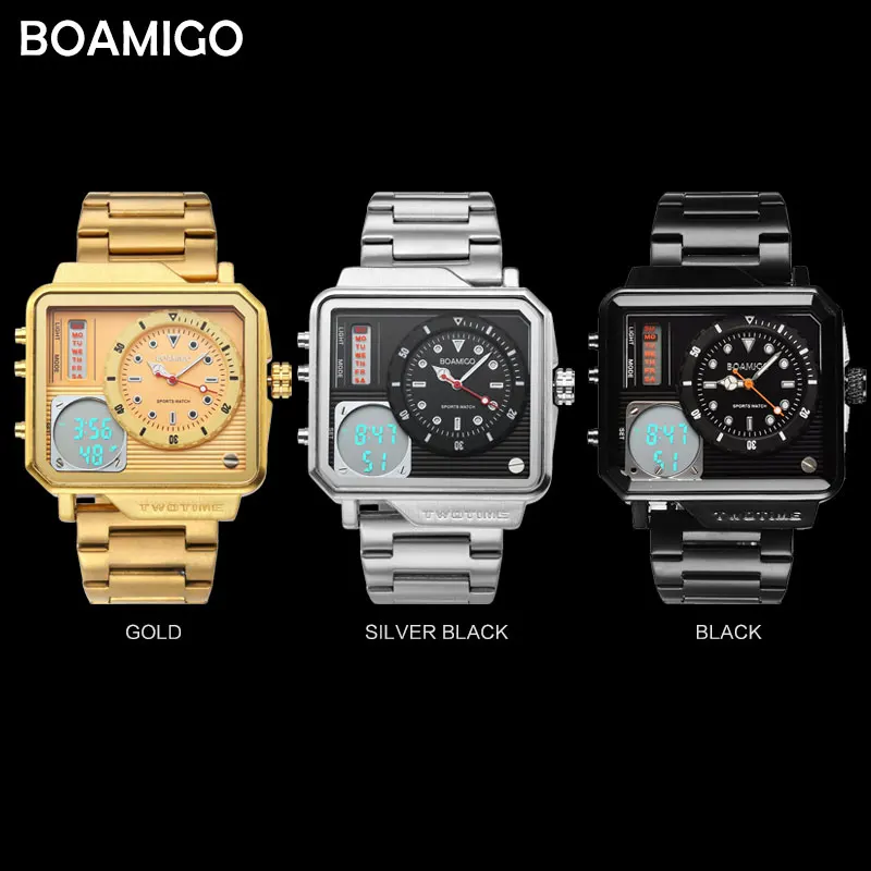 Часы BOAMIGO мужские, спортивные, цифровые, аналоговые, из нержавеющей стали, повседневные, 2020