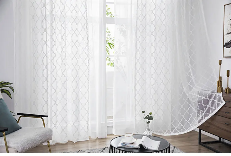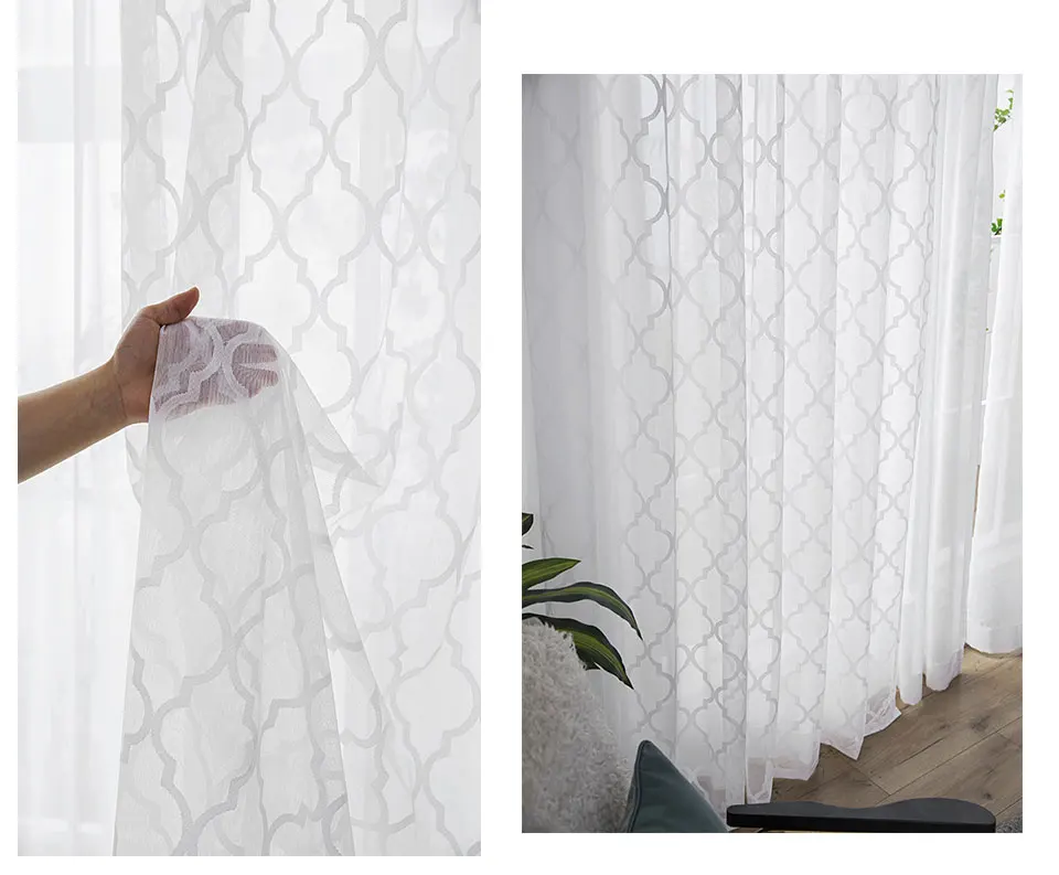 Тюлевая занавеска белого цвета с геометрическим узором для гостиной, Современная занавеска из тонкой ткани, оконная занавеска для спальни, кухни, драпировка, жалюзи