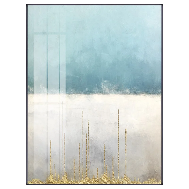 Абстрактный синий белый пейзаж Холст Плакаты печать золотые настенн...