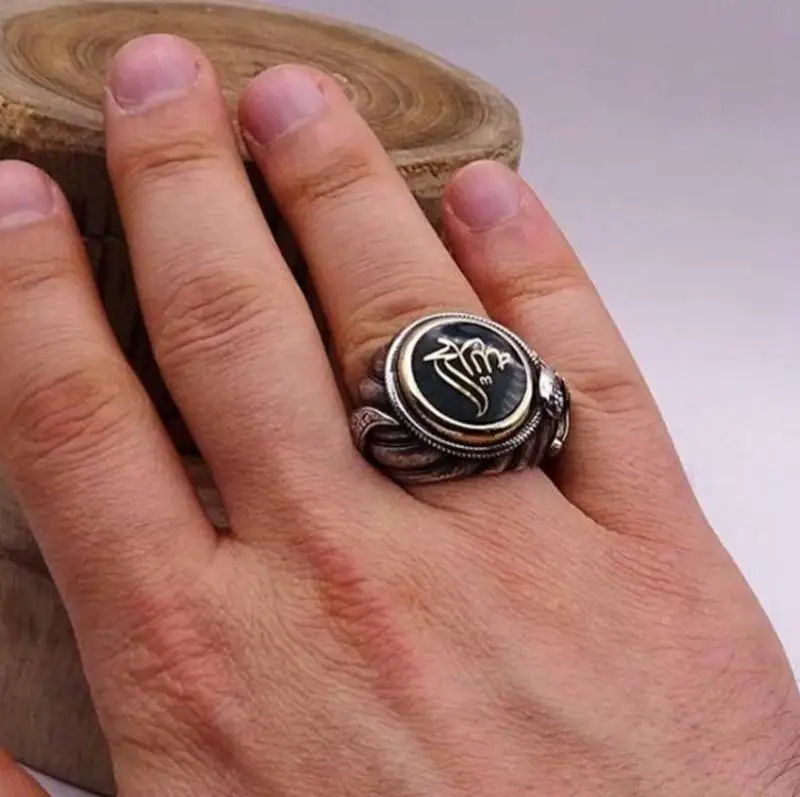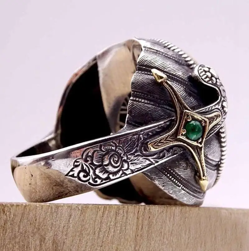Мужское двухцветное кольцо с изображением Саудовской звезды в стиле ретро