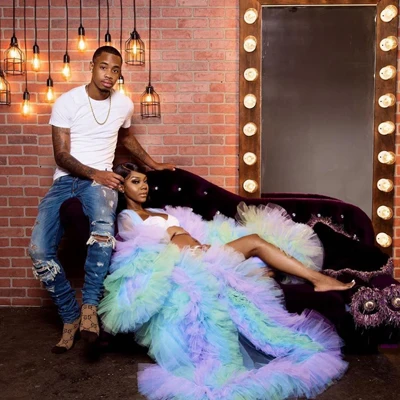 Свадебные пушистые тюлевые халаты для беременных на заказ небесно-г...