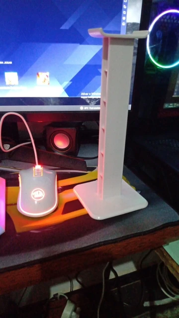 O produto é bem simples, mas tem um plástico resistente. Não tem nada com almofada no suporte de headset e vem com uma fita dupla face embaixo para colar na mesa. Demorou uns 25 dias corridos pra chegar no RS e não fui taxado comprando dois produtos