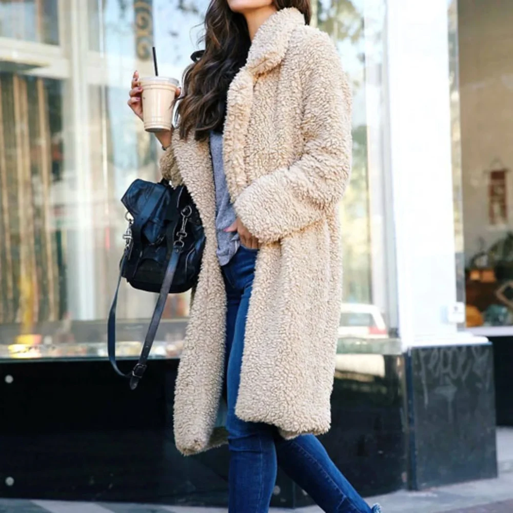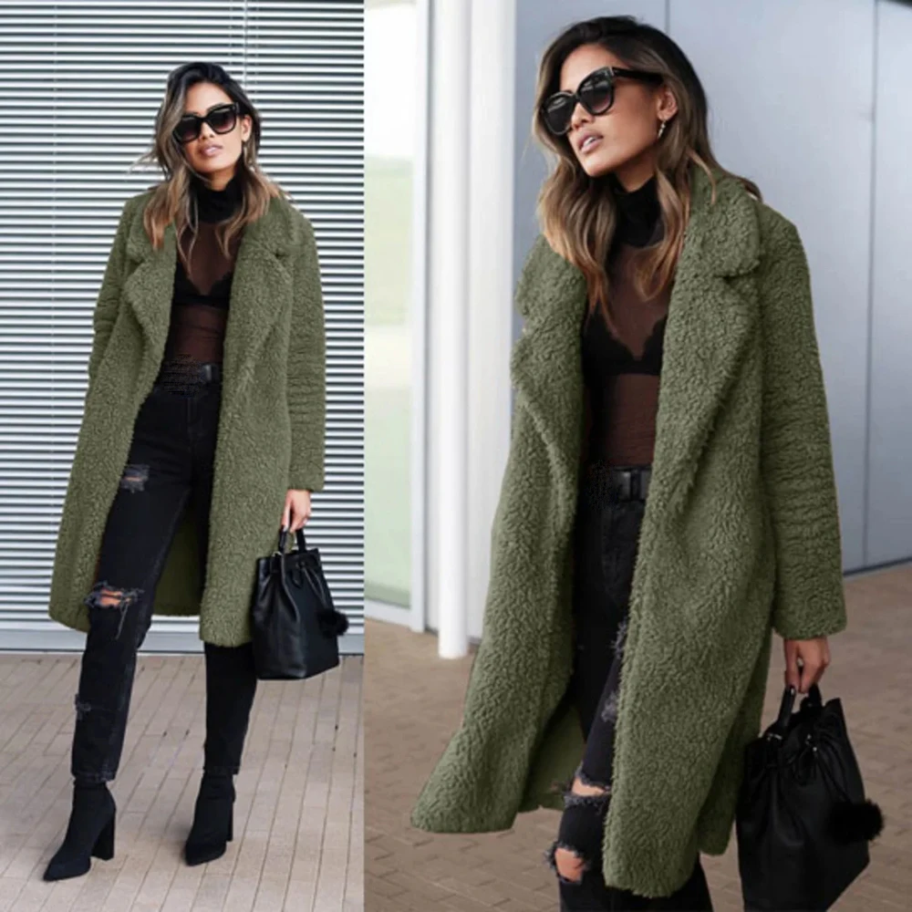 Женские куртки, винтажная однотонная Длинная тонкая теплая куртка теплая верхняя одежда, повседневная женская одежда 2020, повседневная куртка из искусственного меха LL106