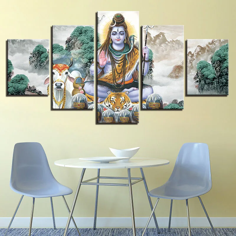 Модульная Картина на холсте 5 шт., индуийский Бог, Шива, Бог, зверь...