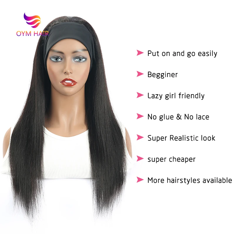 180% Densty парик с головной повязкой человеческие волосы парики прямые человеческие волосы парики для чернокожих женщин бразильские волосы парики Remy полный парик