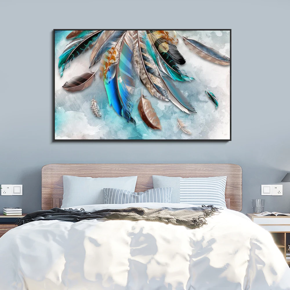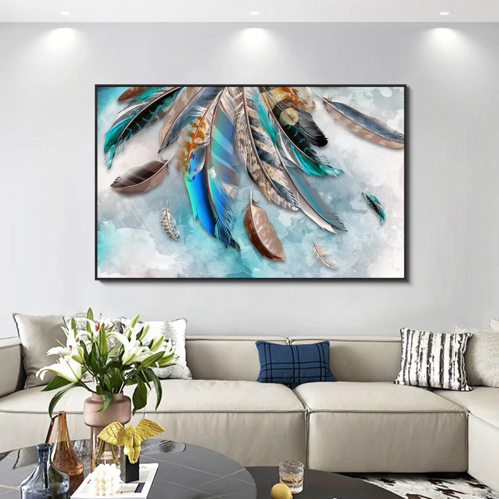 Современная Абстрактная живопись перьями на холсте с принтом скандинавский плакат настенная художественная картина для гостиной домашний декор Безрамное
