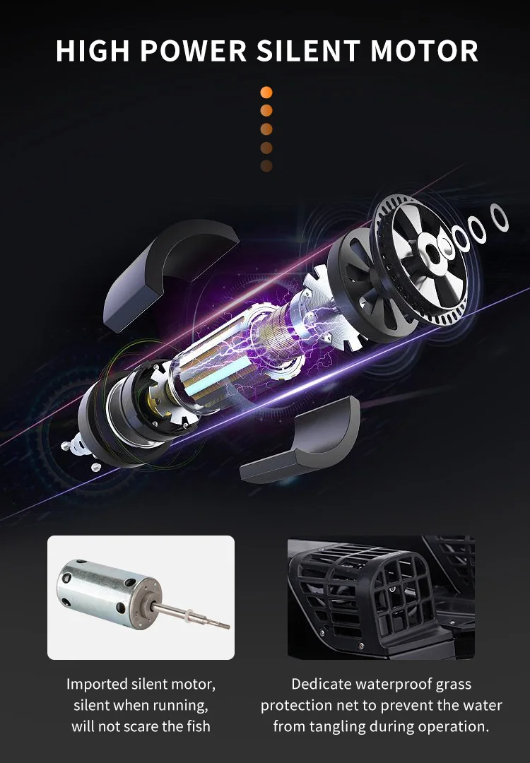 Импортный бесшумный двигатель, тихий во время работы, не отпугнет рыбу
