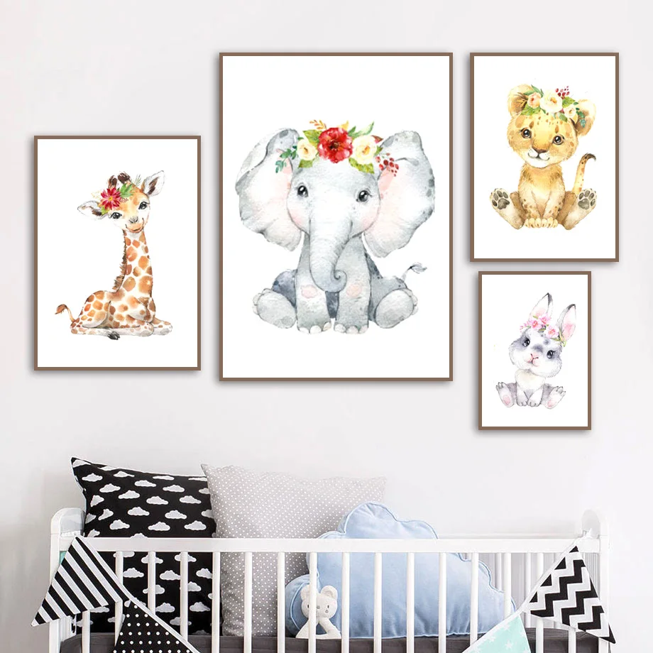 Лев слон жираф коала кролик джунгли настенная живопись холст скандинавские плакаты и принты настенные картины декор для детской комнаты