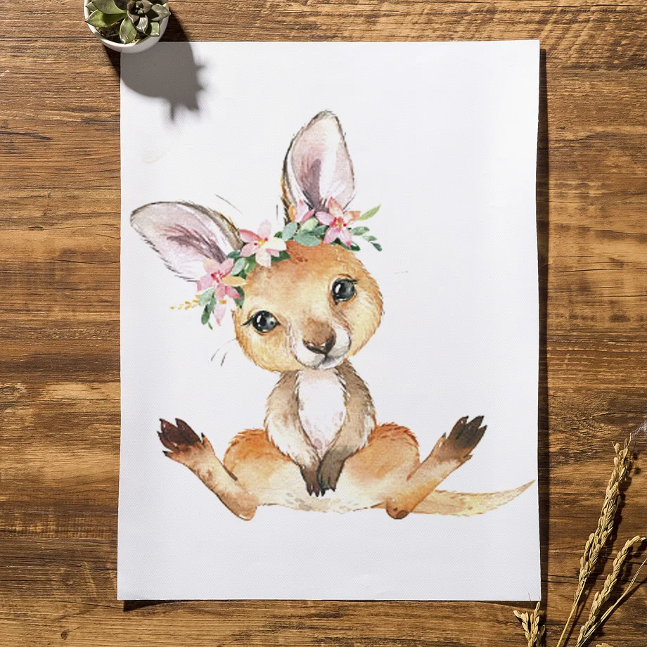 Жираф, медведь, олень, коала, кролик, птица, цветок, настенная живо...