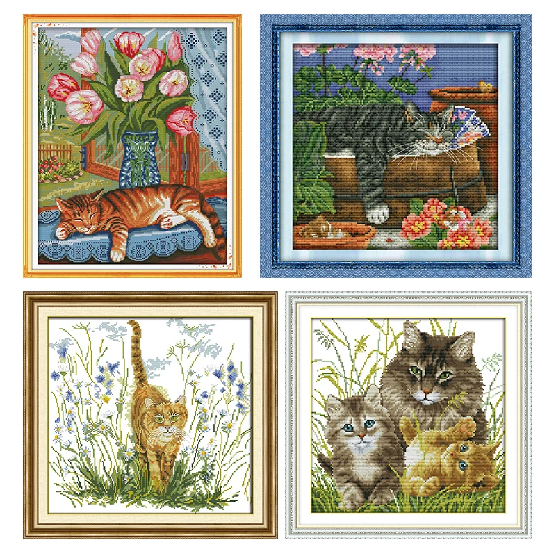 Наборы для вышивки крестиком, озорные коты узоров, напечатанные на ...