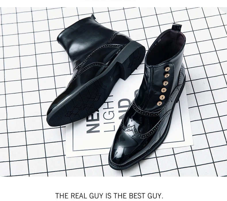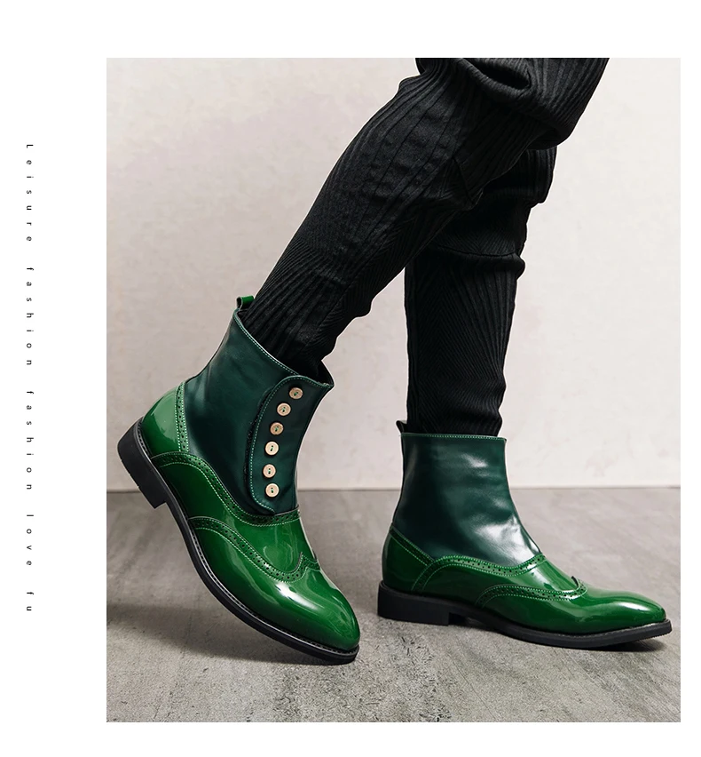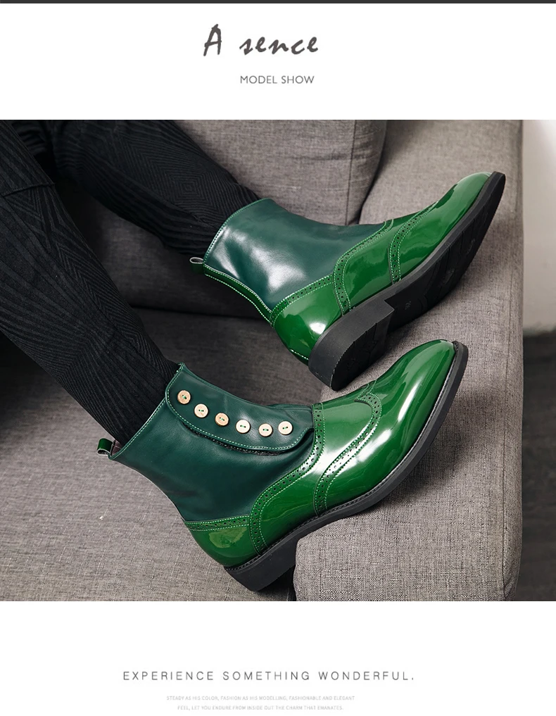38-46; Мужские ботинки; Модные кожаные ботинки с перфорацией типа броги; Сезон осень; Удобная брендовая безопасная обувь; Цвет черный, зеленый; Ботильоны-гладиаторы; Кожаные мужские ботинки