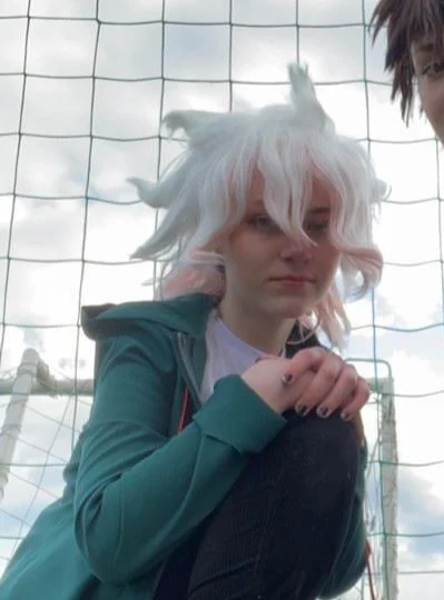 Цвет парика белый,а снизу немного розоватый,как на фото у товара,для косплея на Нагито подходит отлично