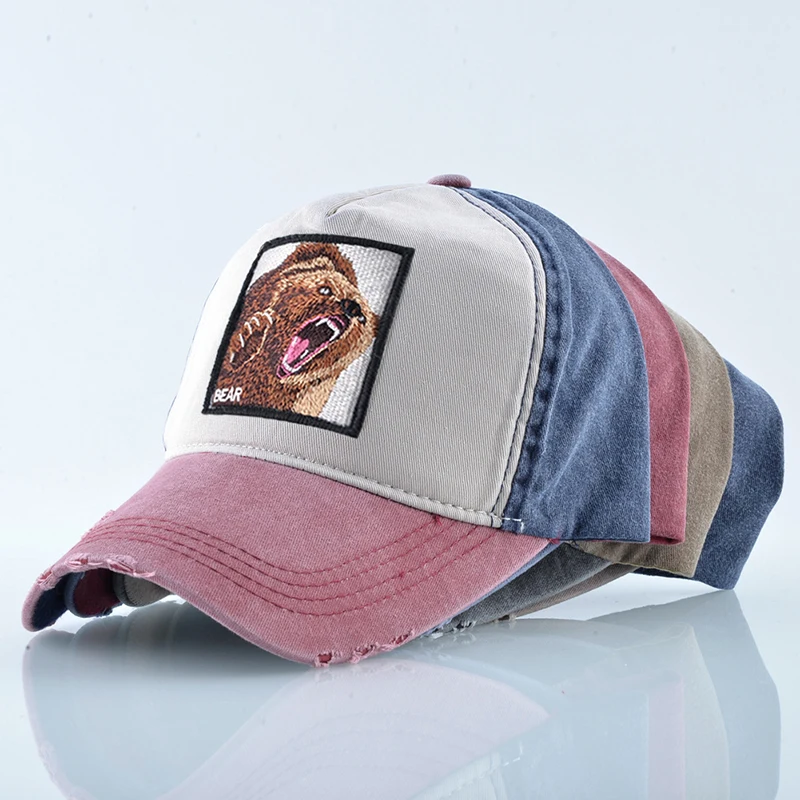 Мужская бейсбольная Кепка в стиле хип-хоп с вышитым животным медведем, унисекс, уличная Спортивная Кепка для мужчин и женщин, дышащая Кепка Snapback