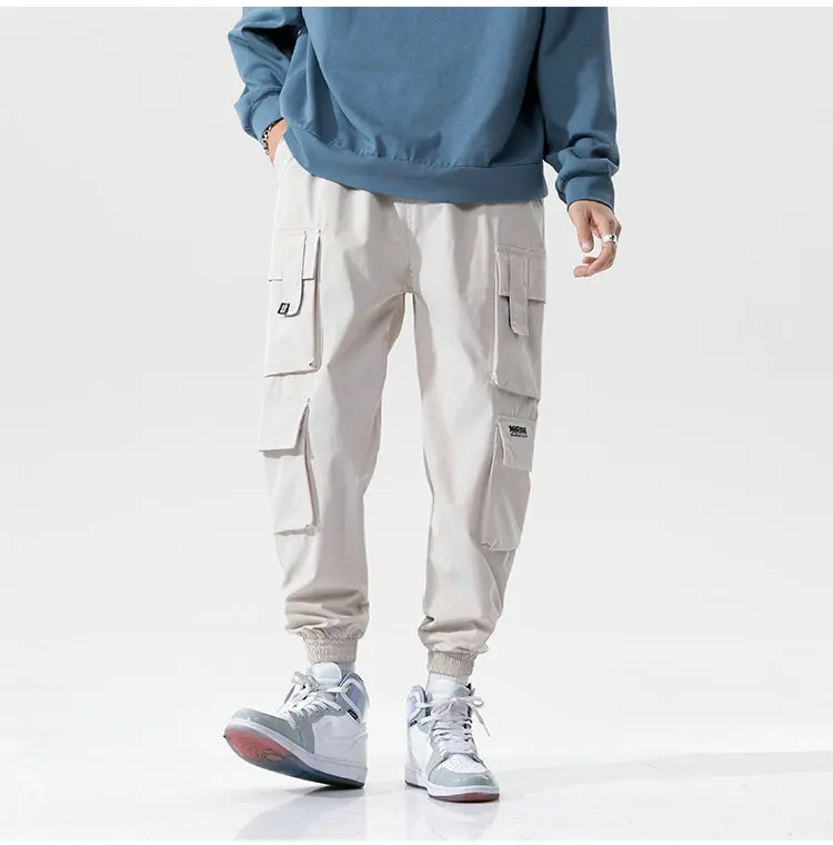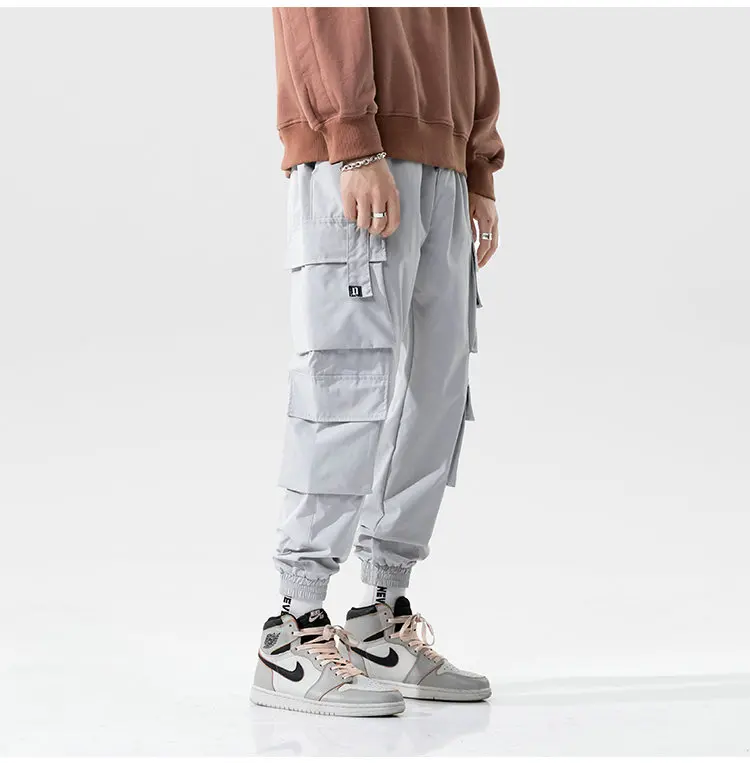 Новинка 2022, Джоггеры в стиле хип-хоп, брюки-карго, мужские брюки-султанки со множеством карманов, мужские тренировочные брюки с лентами, уличная одежда, повседневные мужские брюки