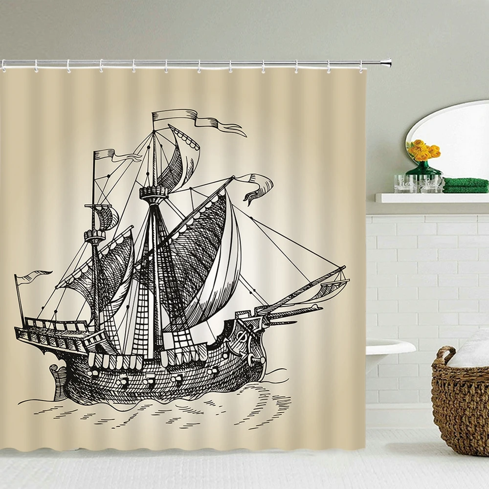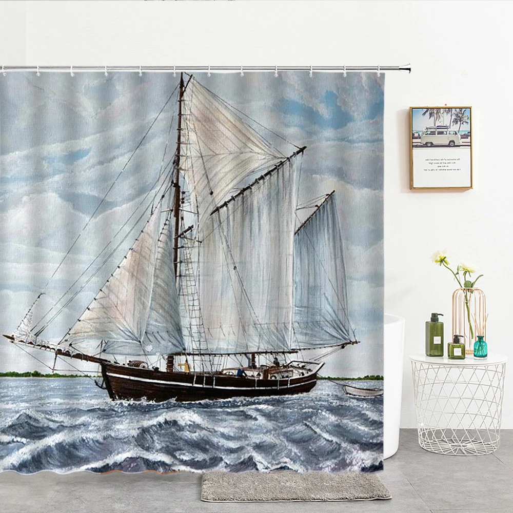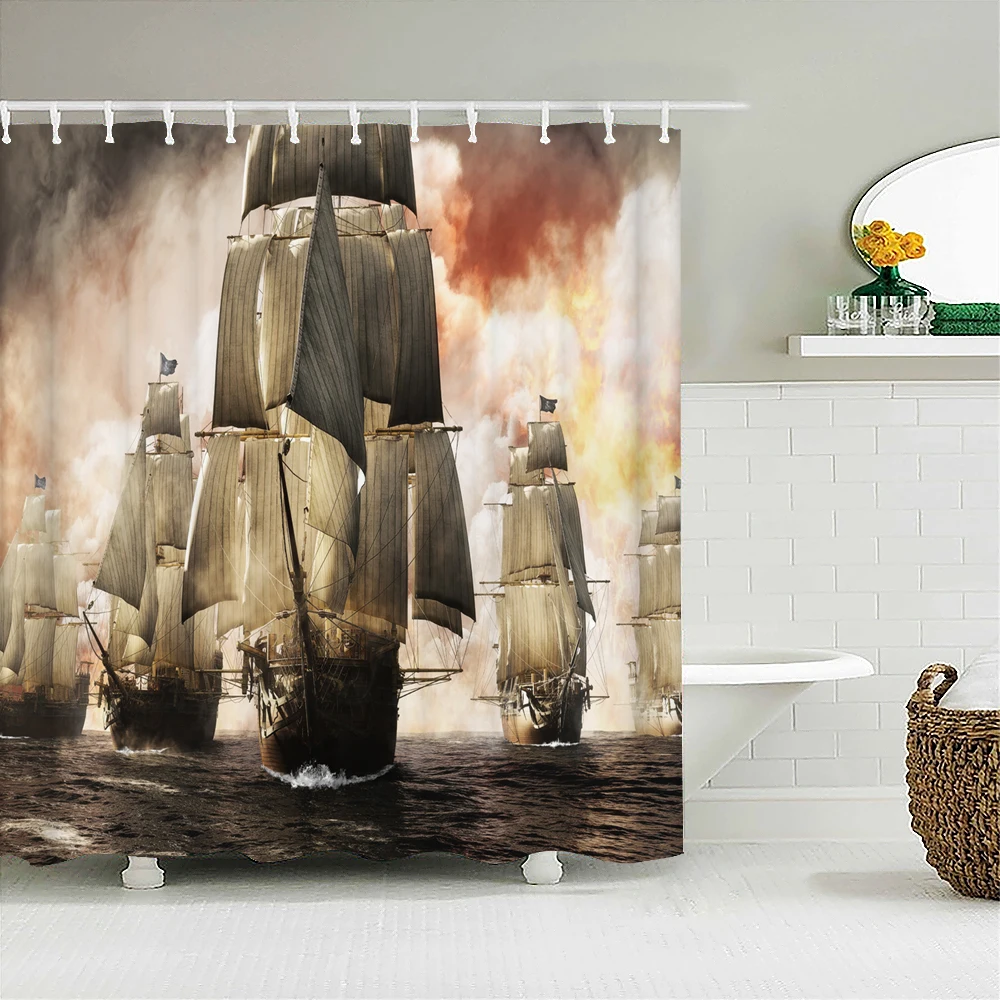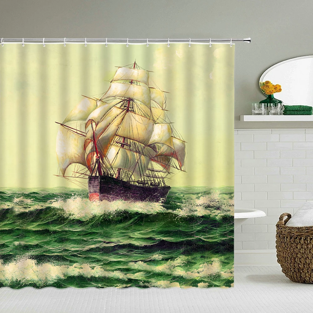 Парусная лодка, водонепроницаемые занавески для душа в ванной, морская навигация, занавески для ванной, 3d печать с крючками, 180*180 см, моющаяся ткань