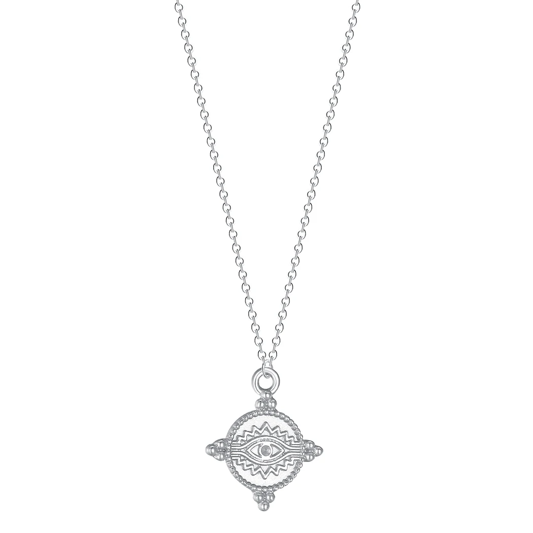 Ожерелье из серебра 925 пробы с голубым цирконием сглаза