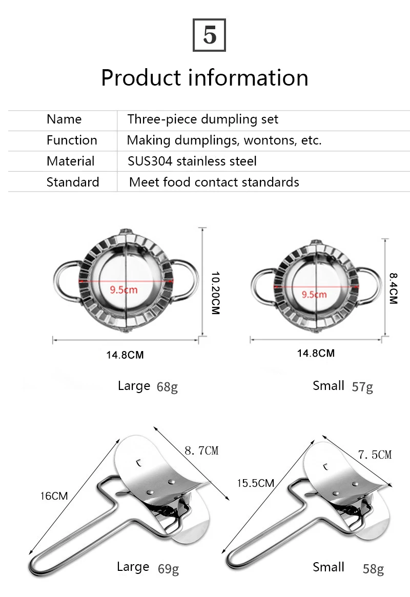 3PCS Кухня Домашний пресс для клецок Набор пресс-форм для рулонов Т...