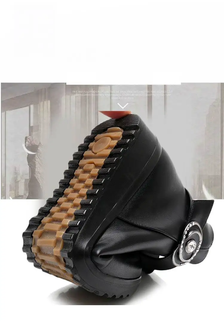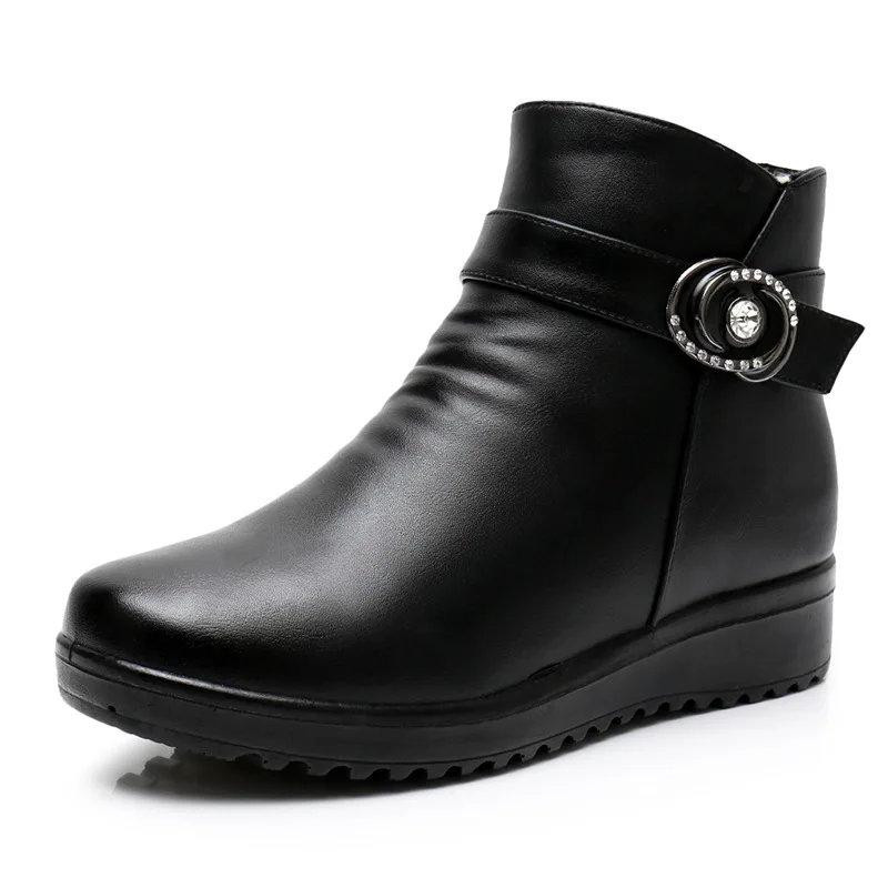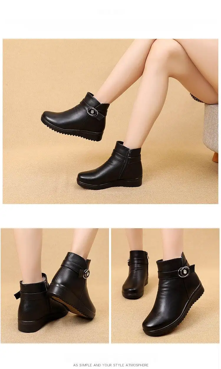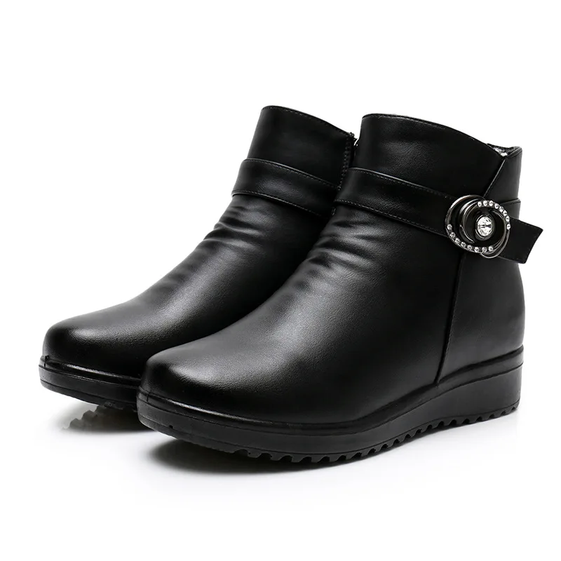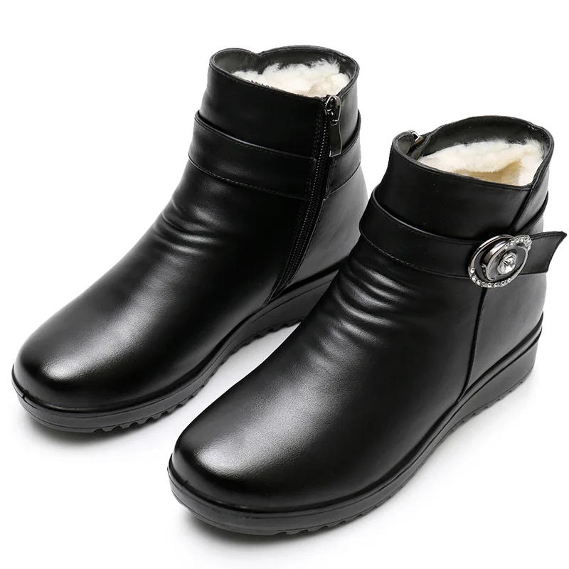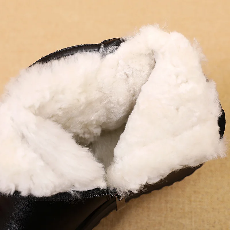 GKTINOO2022; Женские зимние ботинки; Зимние ботильоны на плоской подошве; Женская теплая обувь на платформе; Кожаные ботинки на толстом меху