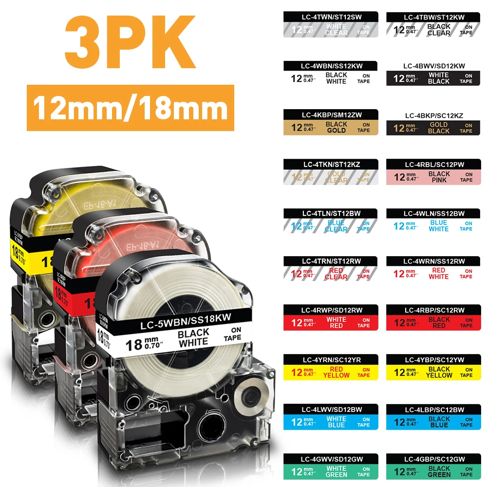 3PK 12 мм, 18 элементов, стикер, совместимый с Epson Kingjim, этикеток SS12KW, SS18KW для Epson
