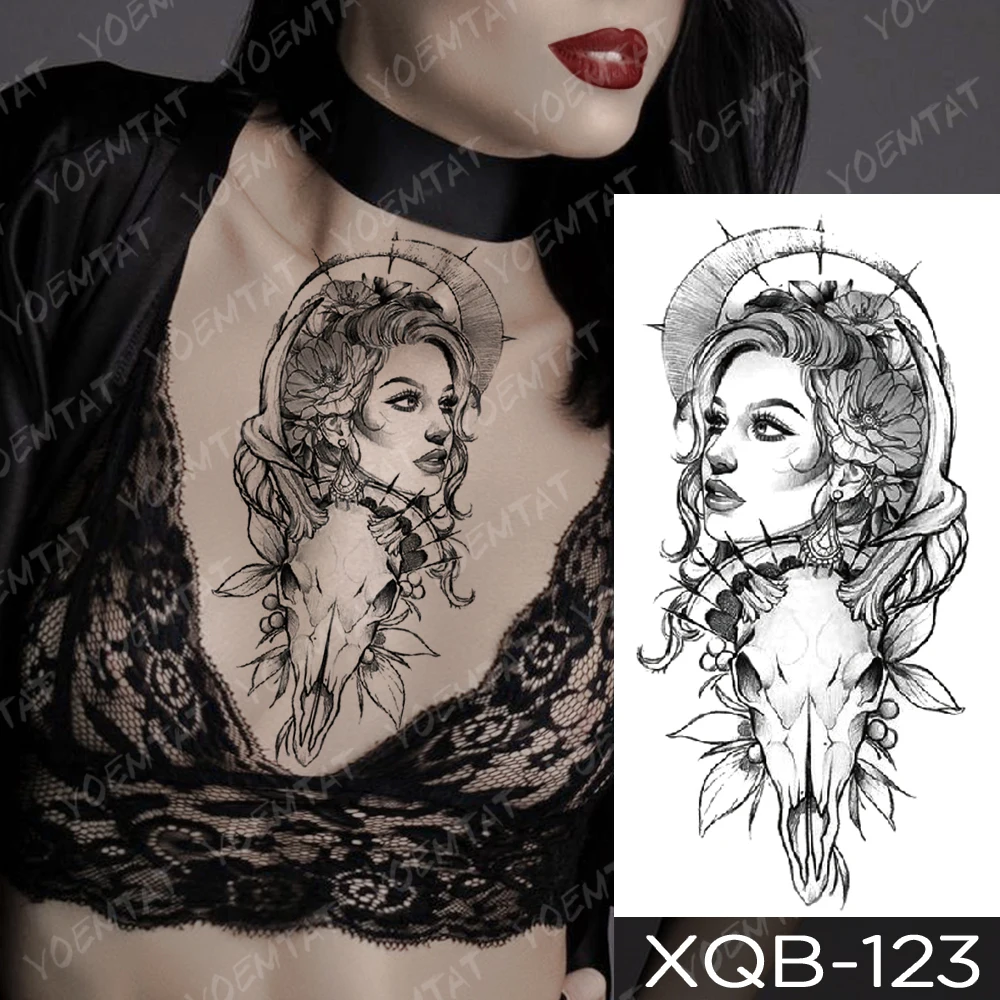 Водостойкая Временная тату-наклейка, кукла-русалка, тату для девочек, Бабочка, волк, Череп, боди-арт, рука, искусственное тату на руку для женщин и мужчин