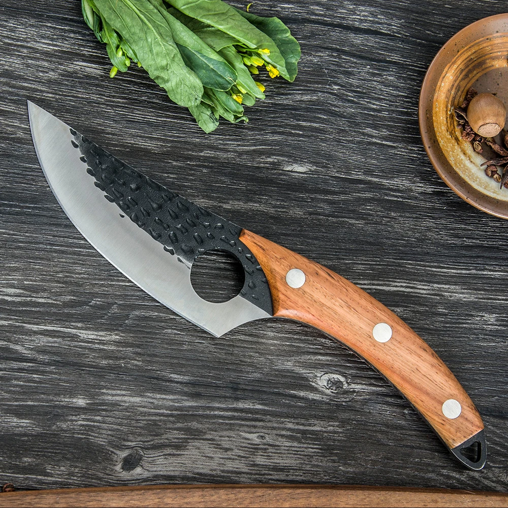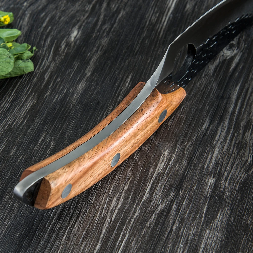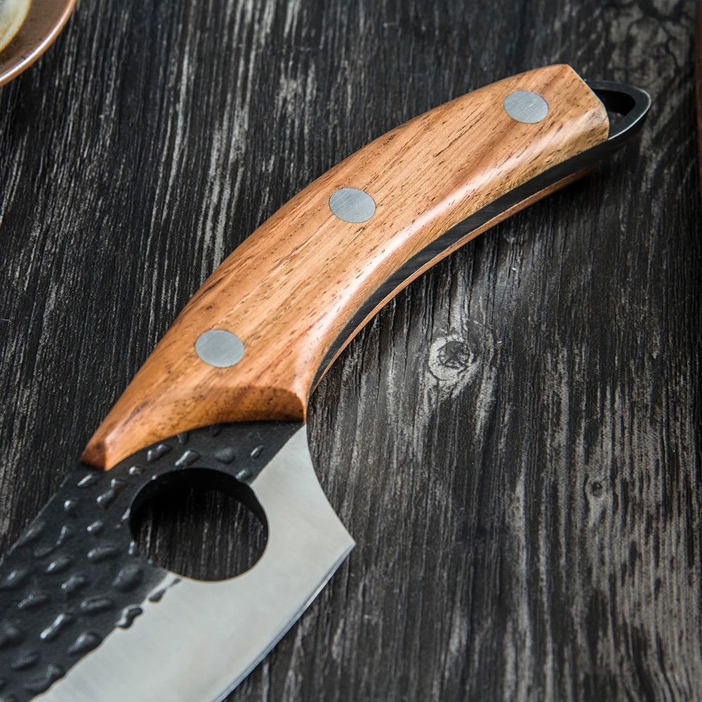 XYj кухонный гаджет, инструмент, 5,5 дюймов, нержавеющая сталь, нож для мясника, для костей, с деревянной ручкой, молоток, лезвие с узором, сербский нож
